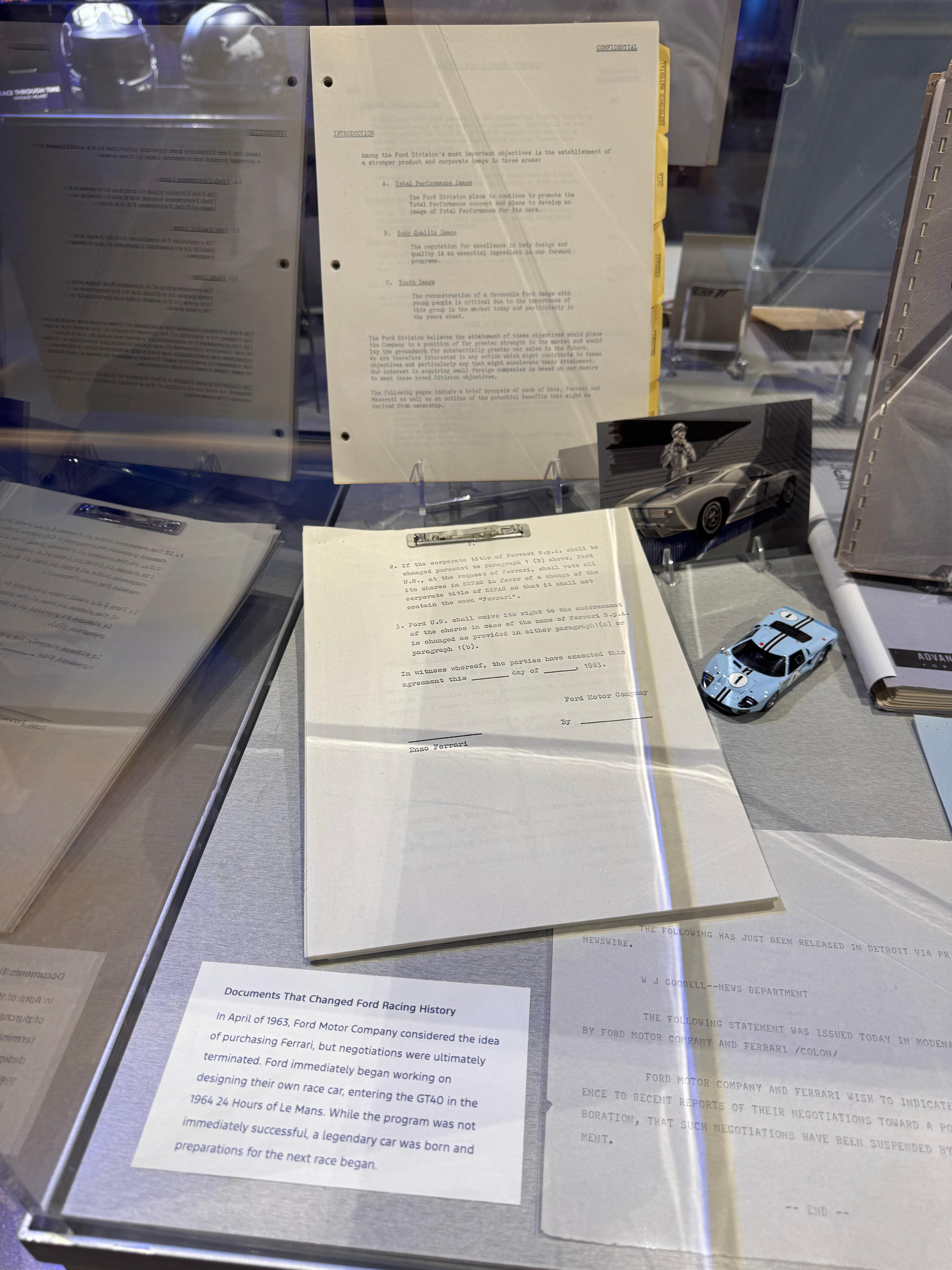 找到了两个老物件,1963年亨利福特二世试图收购法拉利却被恩佐嘲讽的那份原始合同,以及日后1966年打脸恩佐的那台GT40。60年后比尔福特又说出了那句话“我们必须去欧洲,我们必须赢”福特应该是法拉利最恨的汽车品牌了“为什么60年过去了你们还要追着我打,这么记仇吗”福特大战法拉利极速车王