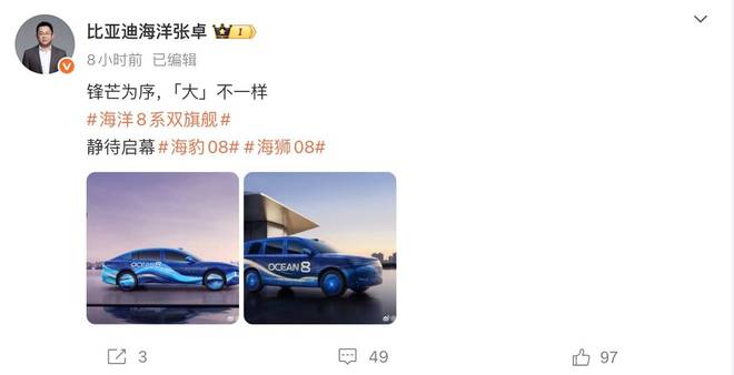 「8系」双车的推出,正值比亚迪海洋网寻求品牌向上突破的关键节点。