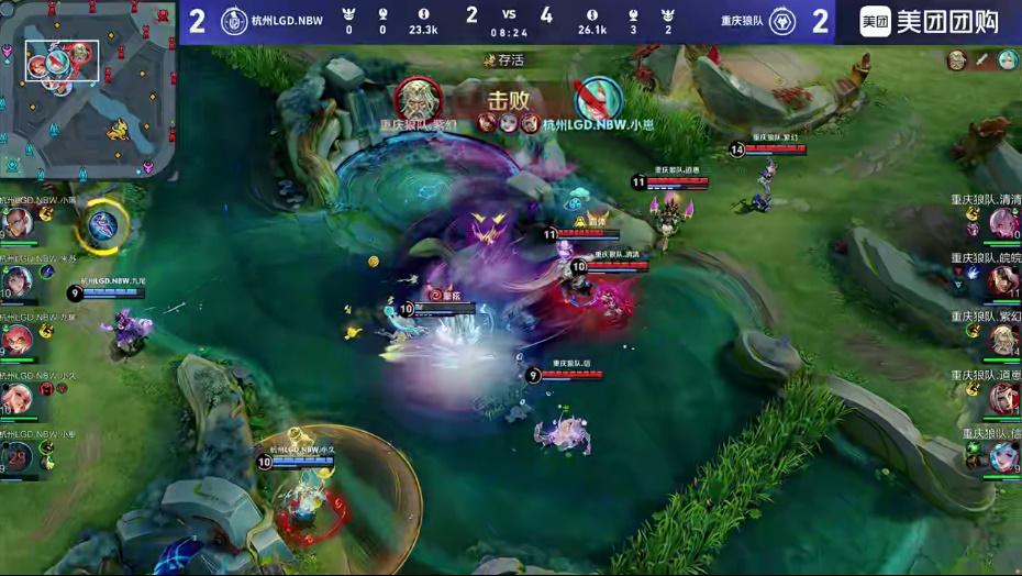 九尾安琪拉闪现大招秒掉信朵莉亚,狼队四打五打出一换三