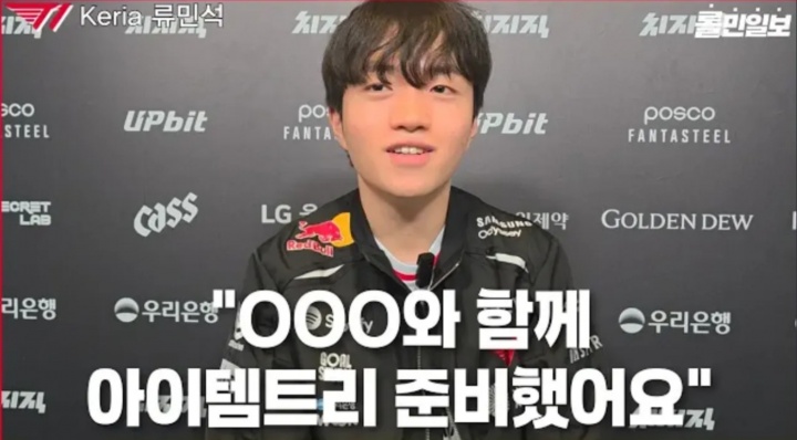 Keria:我现在也认为软辅在下路对局中比较好,善于击杀软辅和大核AD的蔚等英雄最近优先级又变高了。我认为要制定好整体的阵容,第一局我们未能认知到整体的阵容平衡性。