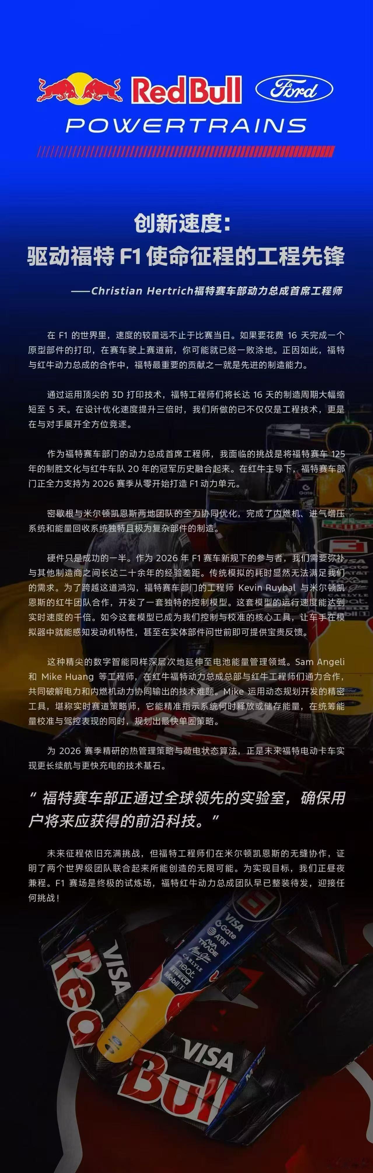 福特官宣回归F1赛场,与红牛合作。2026赛季是F1的全新世代,今年的比赛也充满未知。不过有维斯塔潘这个“汽车人”在,我们只需要期待福特和红牛能为他打造一台有竞争力的赛车就可以了。另外,今年福特也将在多项国际赛事中发力,期待一波。