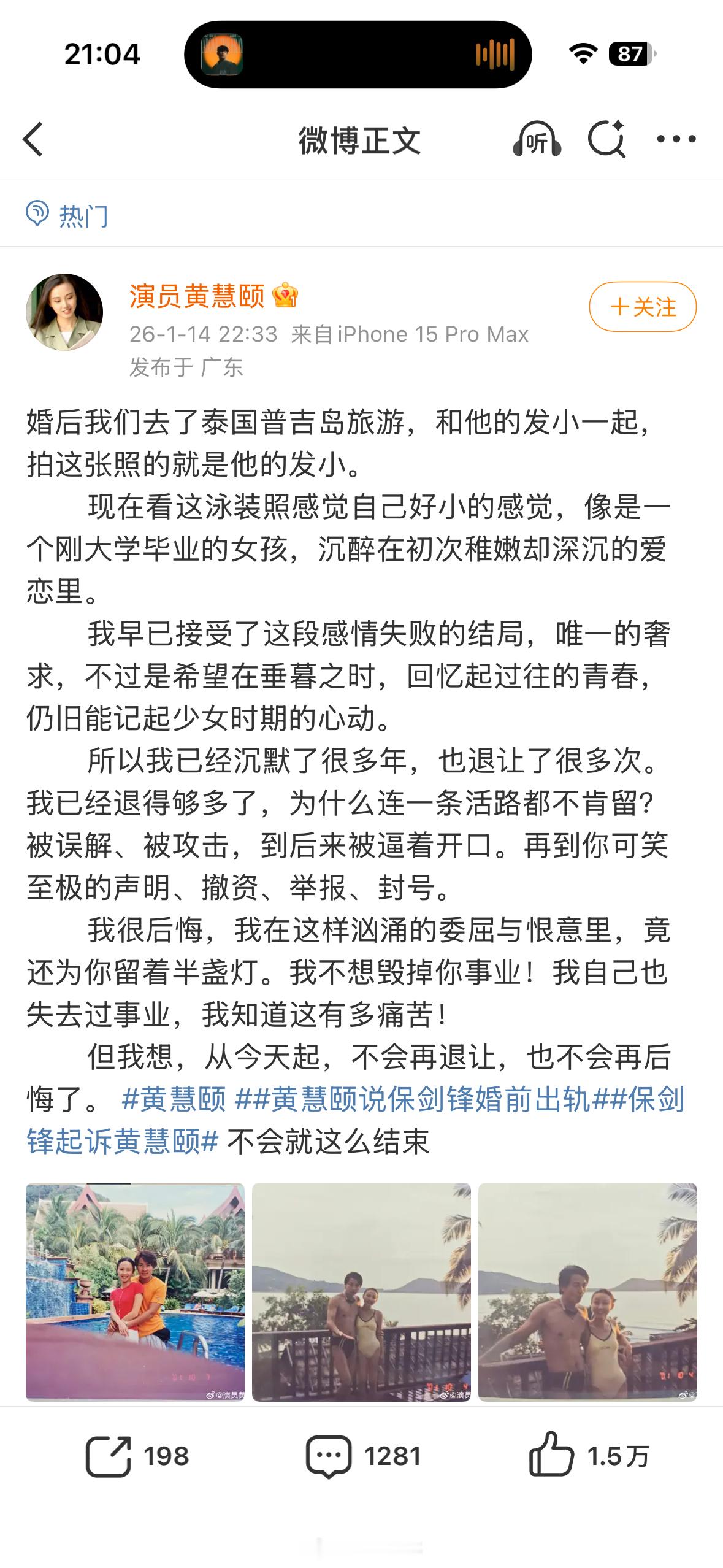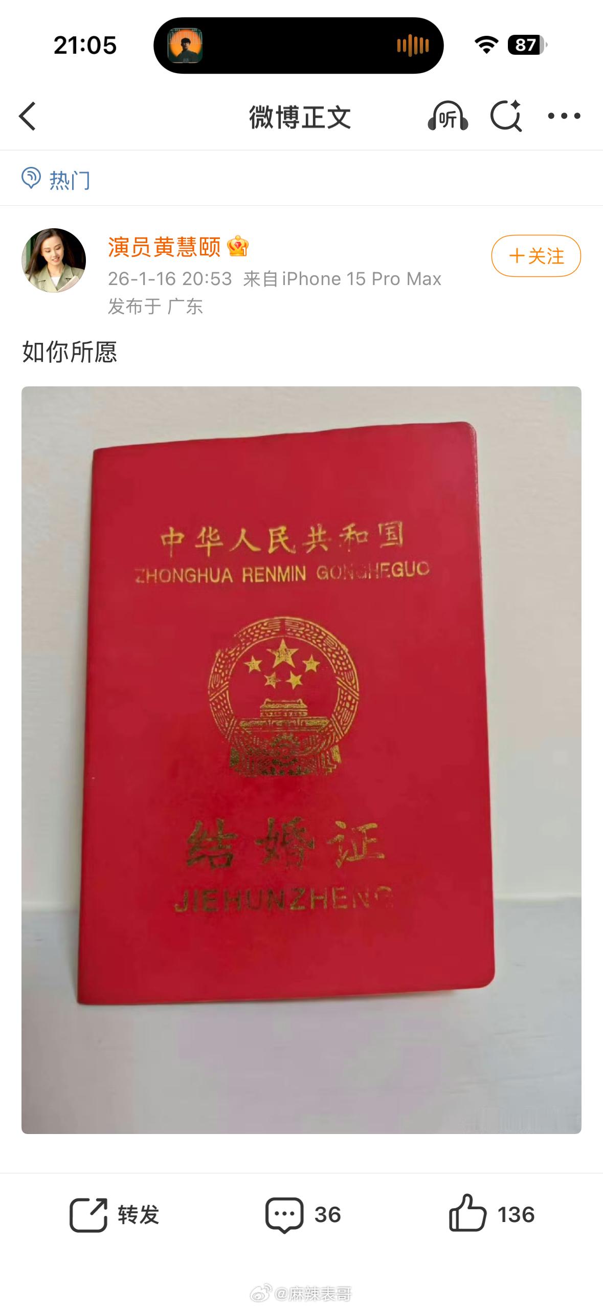 黄慧颐晒了结婚证之前黄慧颐称保剑锋出轨,保剑锋则要起诉黄慧颐