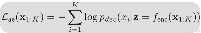 传统自编码器创建潜在空间 z,用作解码器重建输入的先验知识,公式摘自原始 CALM 论文。