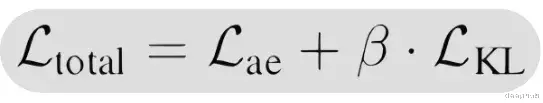 变分自编码器学习目标的表示,beta 作为平衡 KL 散度贡献的小超参数,允许对潜在空间采样的空间约束较少。公式摘自原始 CALM 论文。