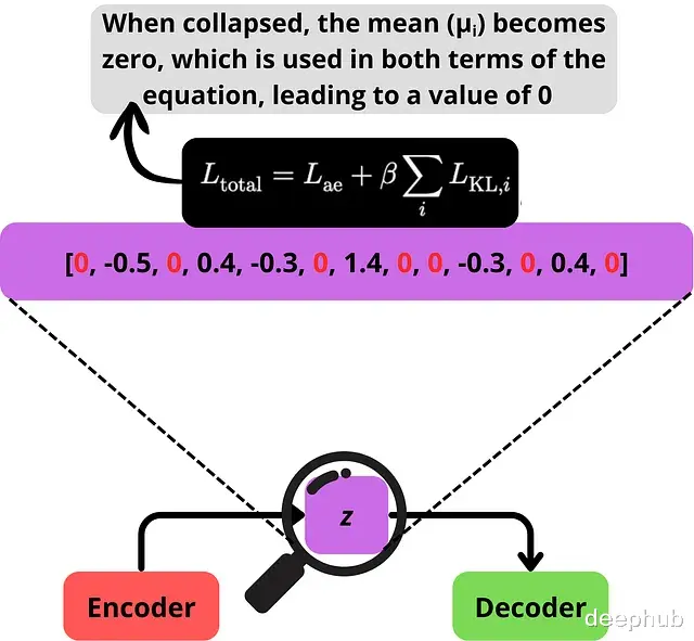 当维度崩溃时,大多数坐标收敛到相同的值(这里是零),因此只有少数维度携带信息,其余的向解码器添加噪声。