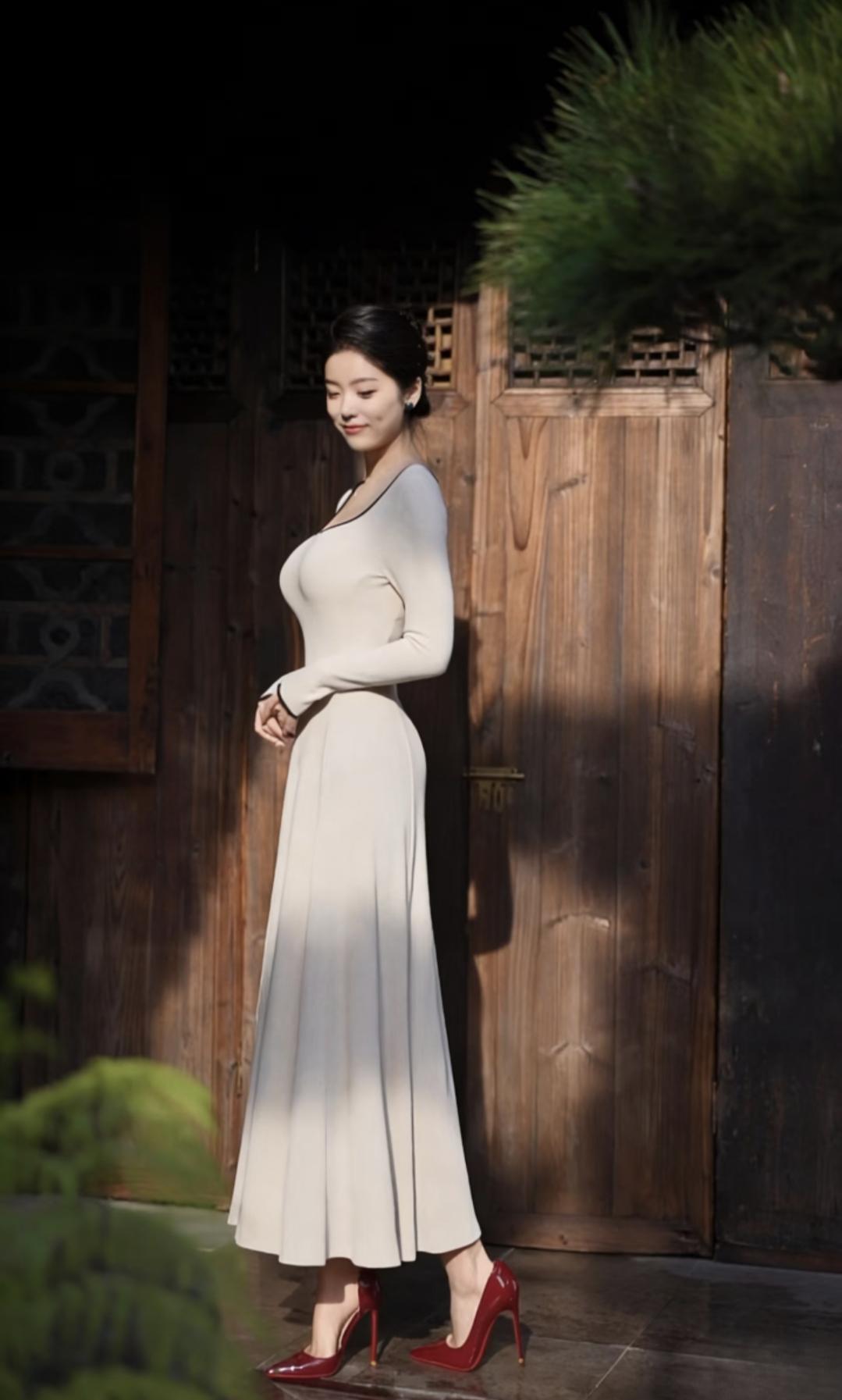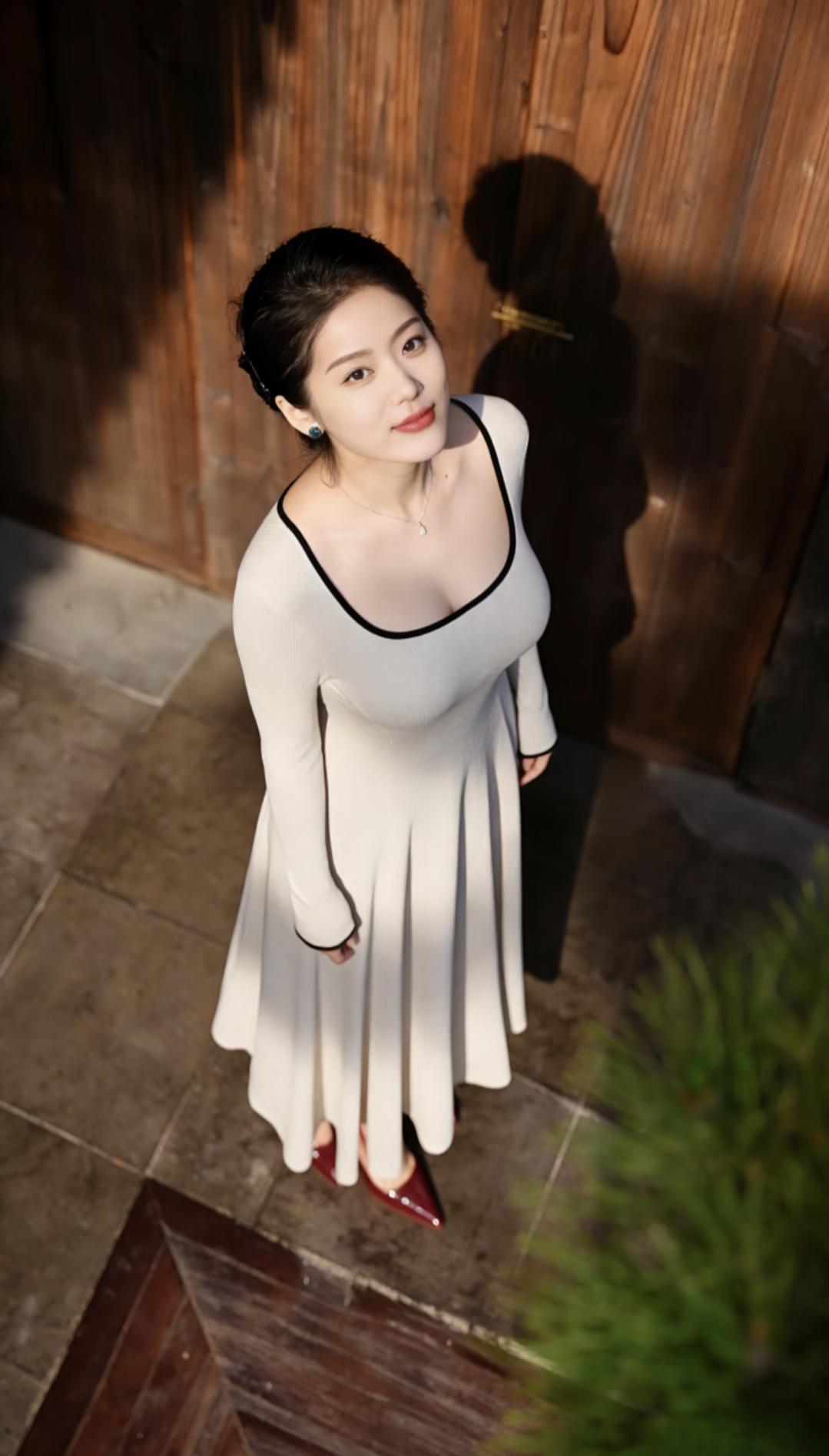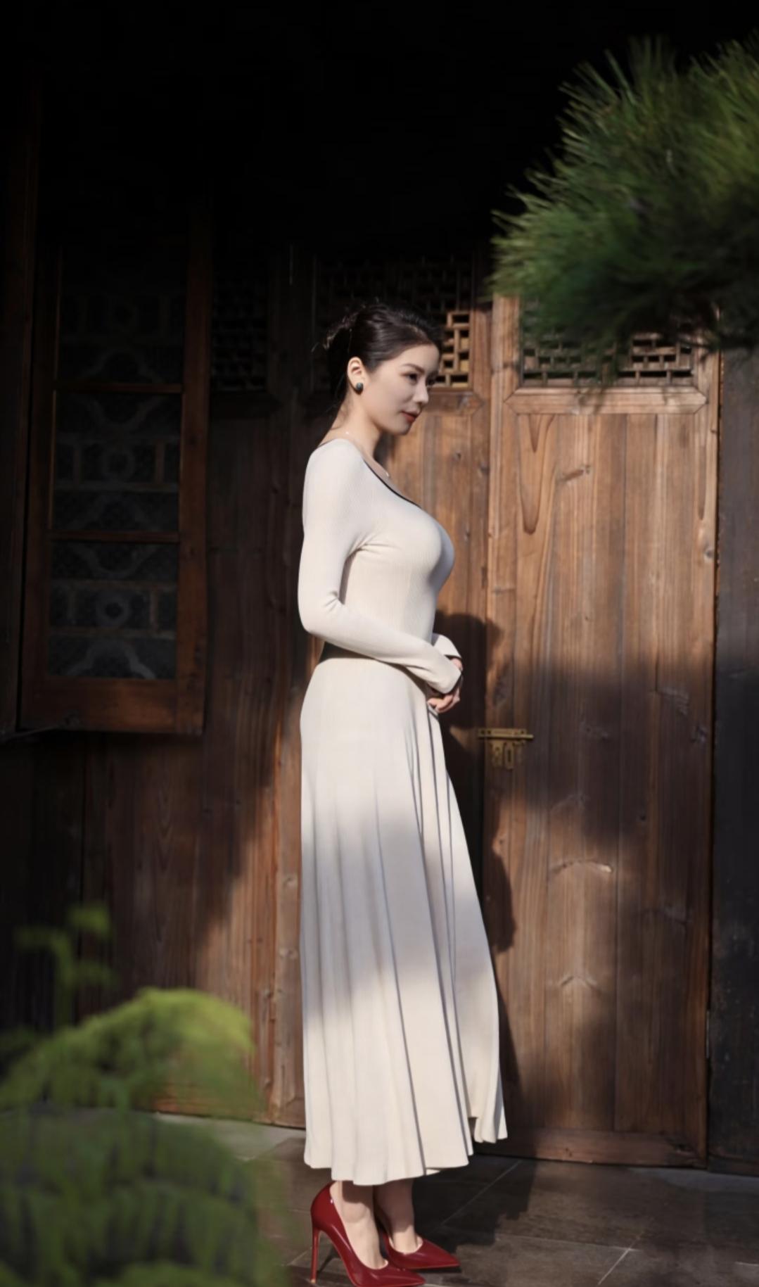 徐娘半老,风韵犹存,嫣然一笑,美丽动人。