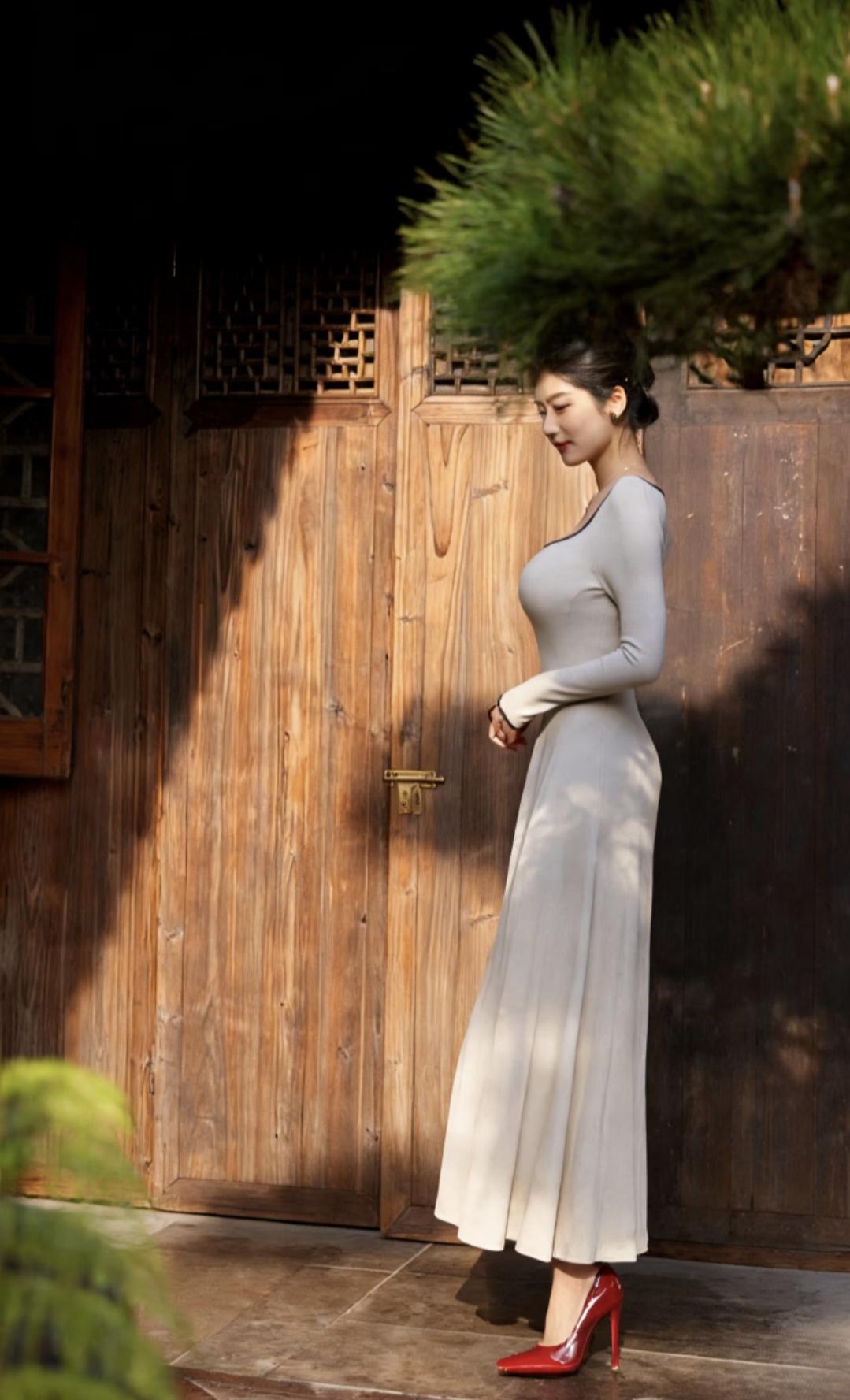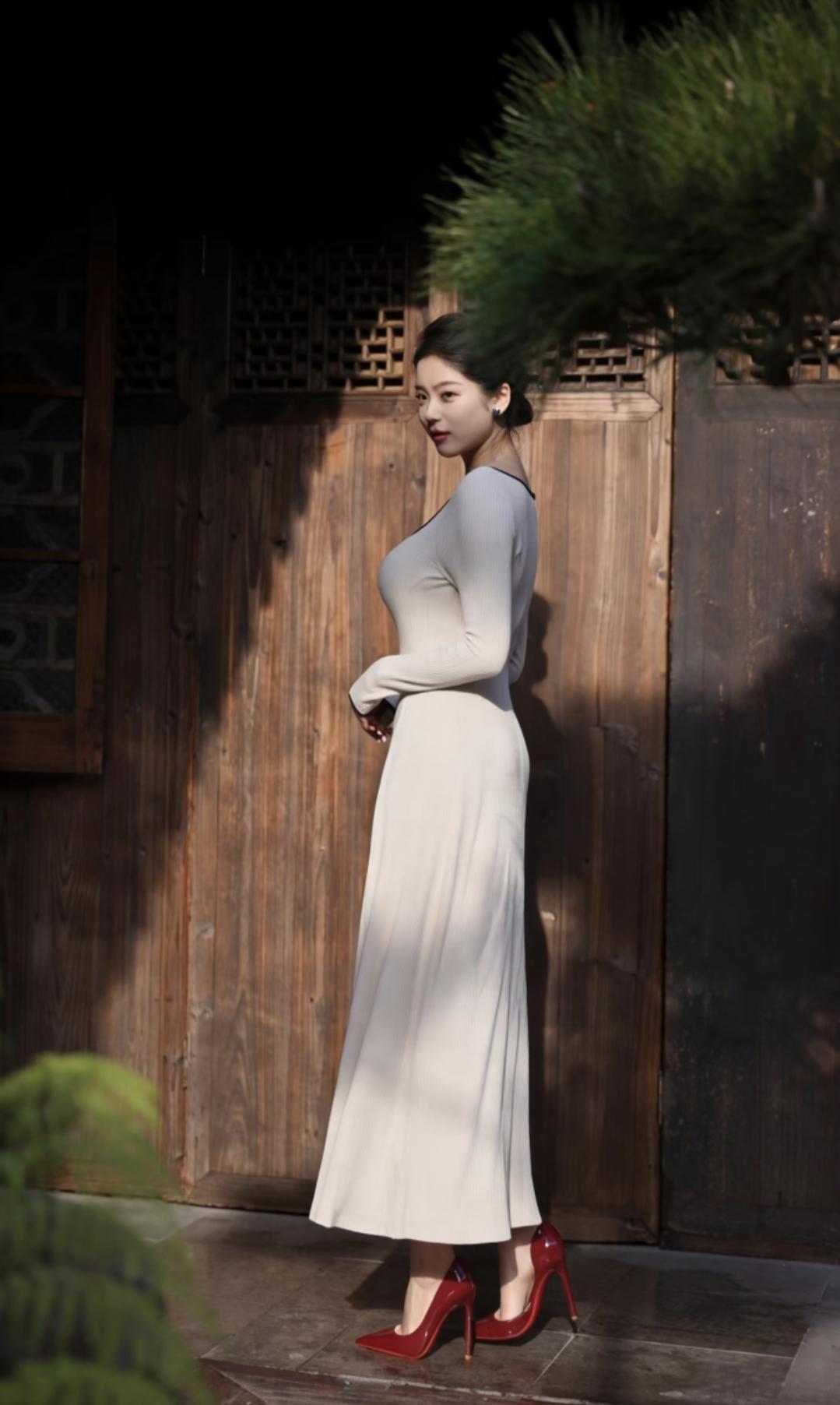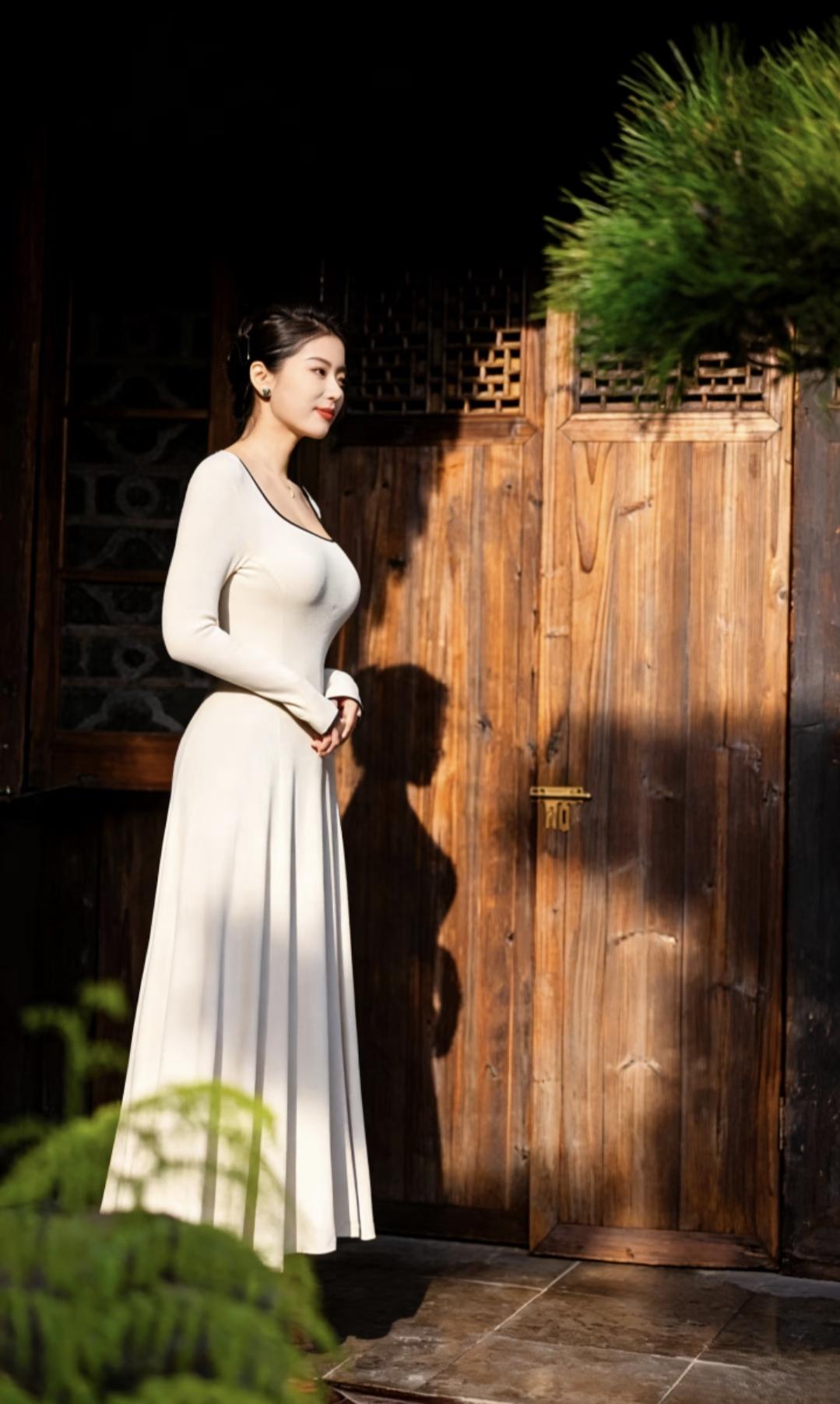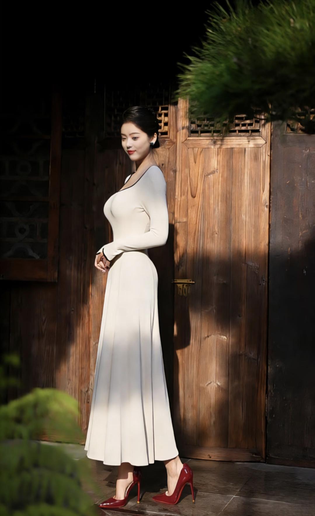 徐娘半老,风韵犹存,嫣然一笑,美丽动人。