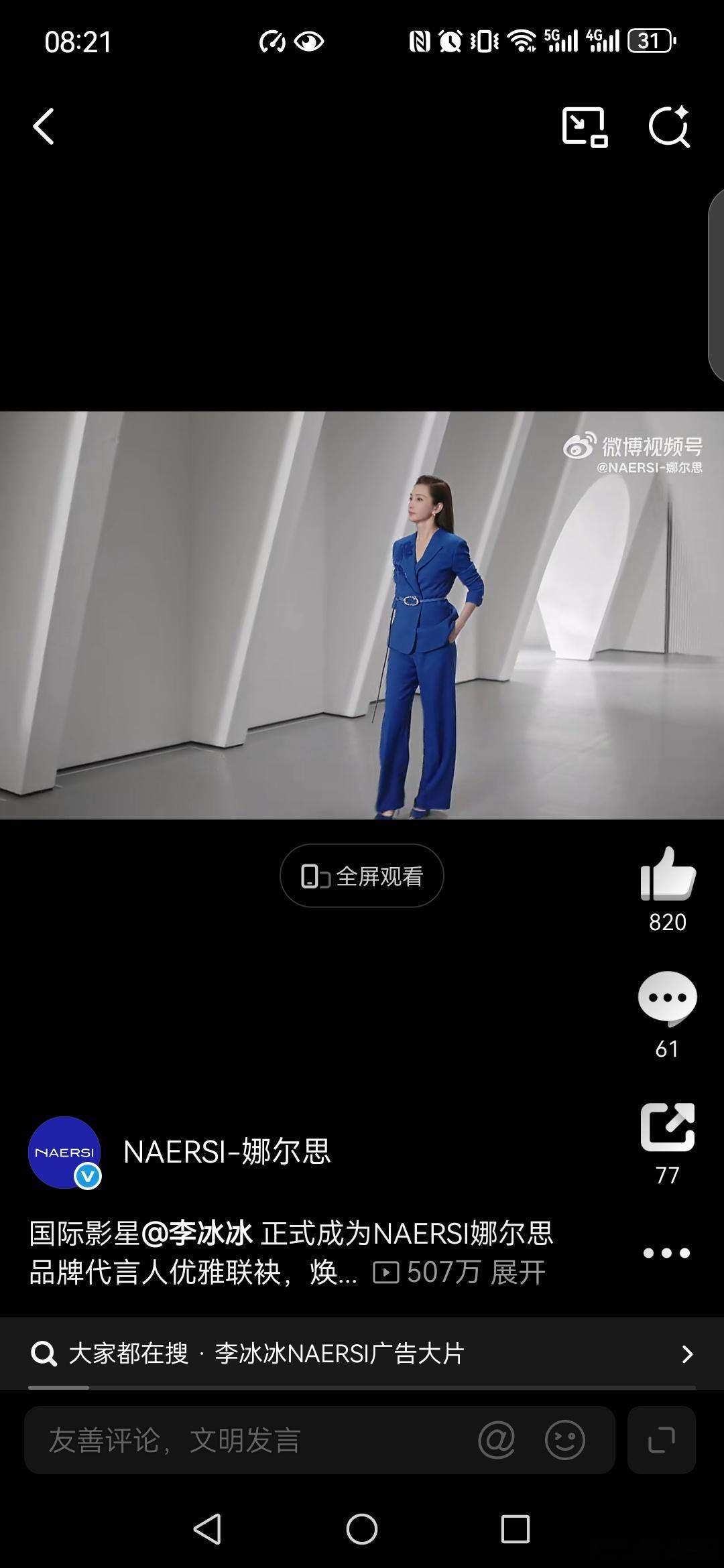 李冰冰NAERSI品牌代言人NAERSI都市优雅 恭喜NAERS李冰冰成为I娜尔思品牌代言人,与I娜尔思品牌匹配度很高 我最喜欢下图这款蓝色的「真我·弦月西装」,因为蓝色是我的爱,而且优雅,大气,利落轮廓,融合了现代简约与艺术感,稳重感十足,柔韧有度,高品质面料,修身合体,视觉上可以拉长身形,展现李冰冰挺拔姿态。现代时尚与经典韵味相结合。