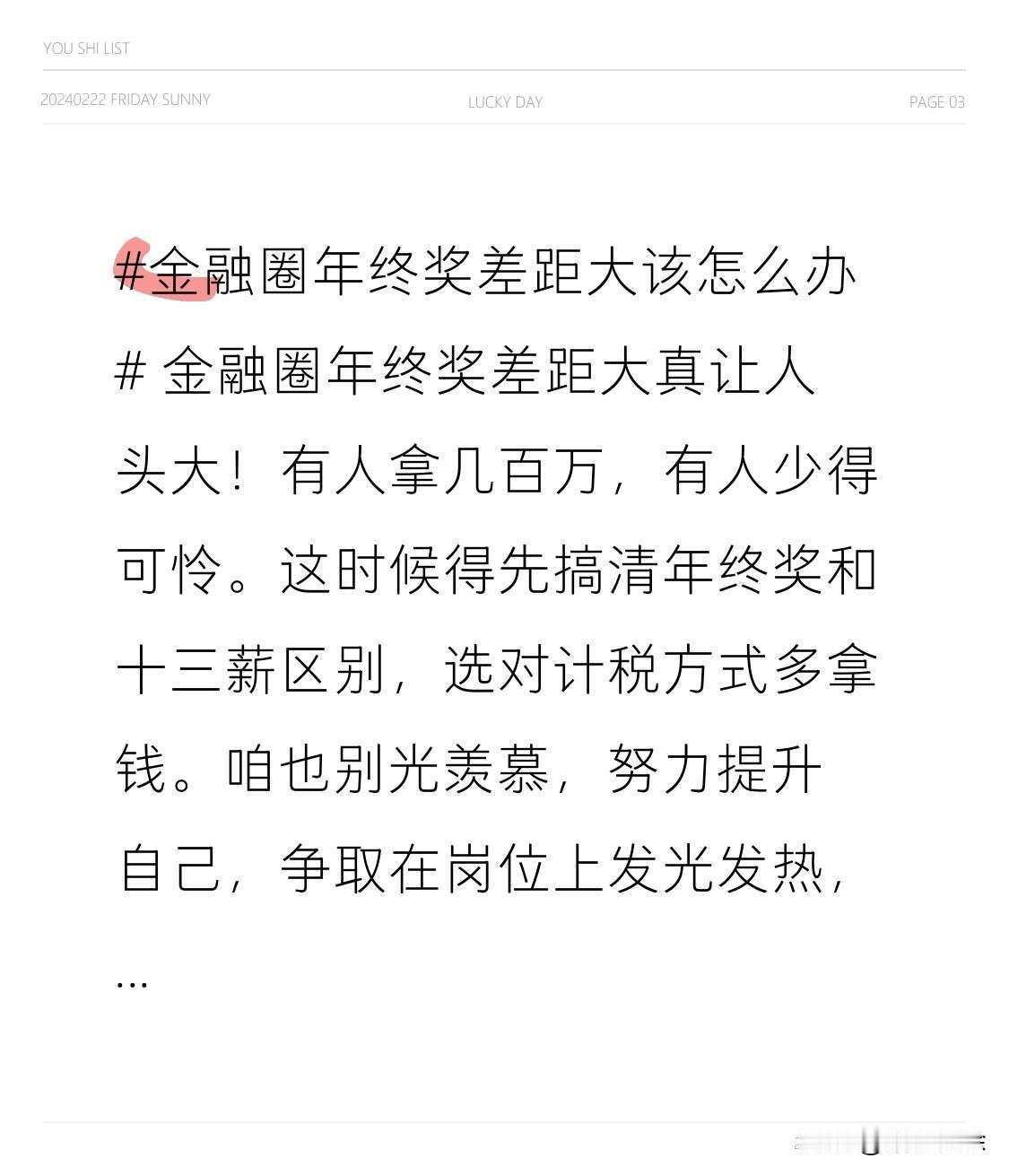 金融圈年终奖差距大真让人头大!有人拿几百万,有人少得可怜。这时候得先搞清年终奖和