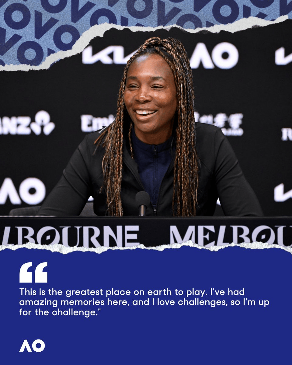 赛前新闻发布会,大威表示:“澳网是世界上最棒的赛事(之一),我在这里有许多惊喜的回忆。我热爱挑战,我已经准备好了迎接挑战。”