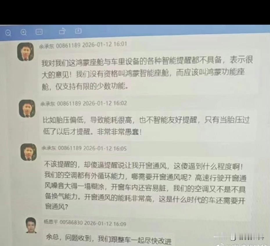 余承东绝对是性情中人。 积极推动解决内部瑕疵。 积极推动解决用户痛点。 虽言语稍有欠文明。 但用户要的是结果,非过程。 不必对过程吹毛求疵。 各大自媒体也不用抨击此类言语。 某些黑粉更应收敛。 若你身处其位,见此问题。 难保不会爆粗口。 勿以自身角度,揣度他人之位。 余承东