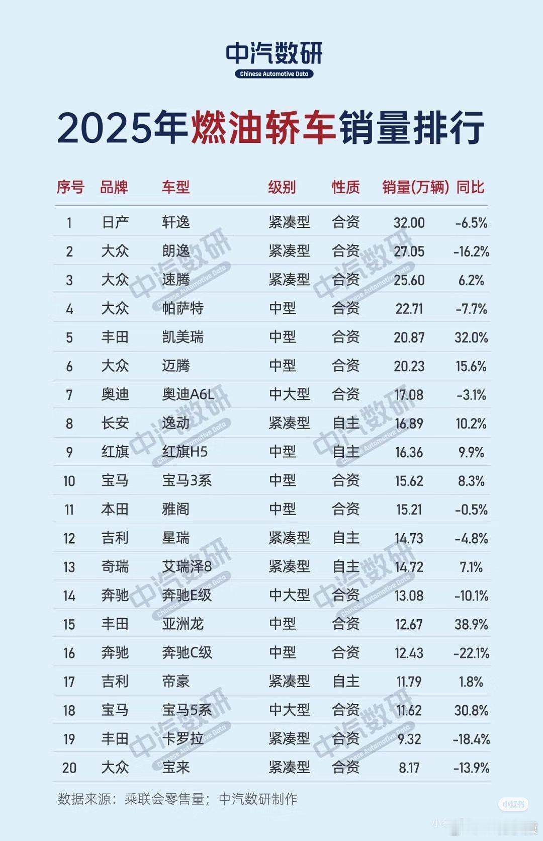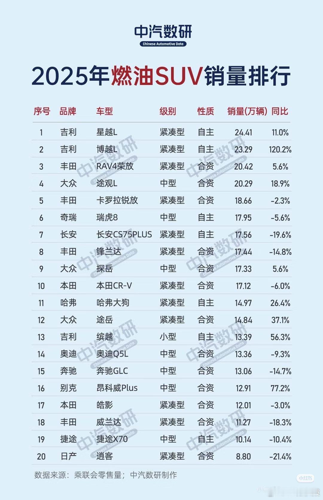 2025年燃油车累计销量排行榜(SUV/轿车),你们身边买电车的多还是买油车的多