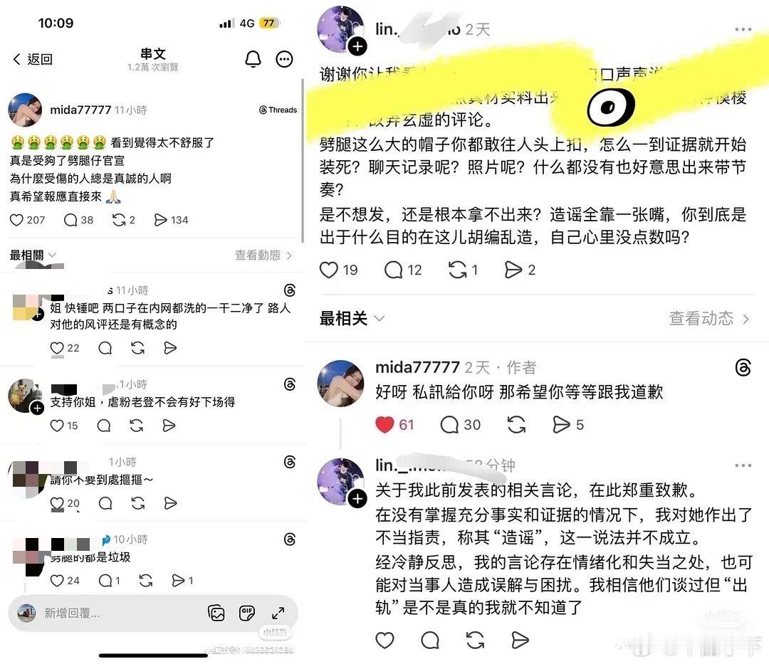 林俊杰的前女友发了他俩的合照,之前林俊杰粉丝就扒出来过她,但是一直骂她炒作倒贴,女方也一直没发证据。昨天女方发了证据,19年跟林俊杰回家见他妈,23年还在一起,时间线貌似跟林俊杰的现女友重合。女方还透露林俊杰pua她的话术,如果她爆料照片,就没有男的会再要她。 说真的,就我最近看到的,林俊杰才是好多台湾ip认证人品不行的艺人曝林俊杰与前女友合照 林俊杰前女友也叫七七