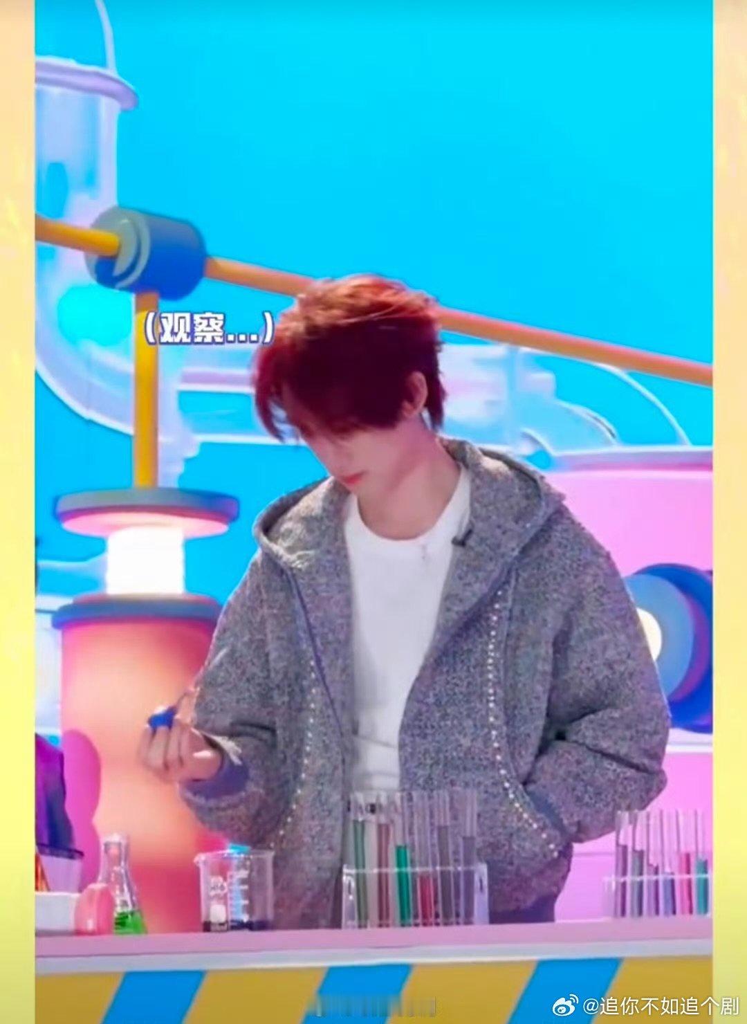 丁程鑫好6团宠有原因的你好星期六 拿着试管认真研究的小丁,下课后就拉着杨迪玩泡泡