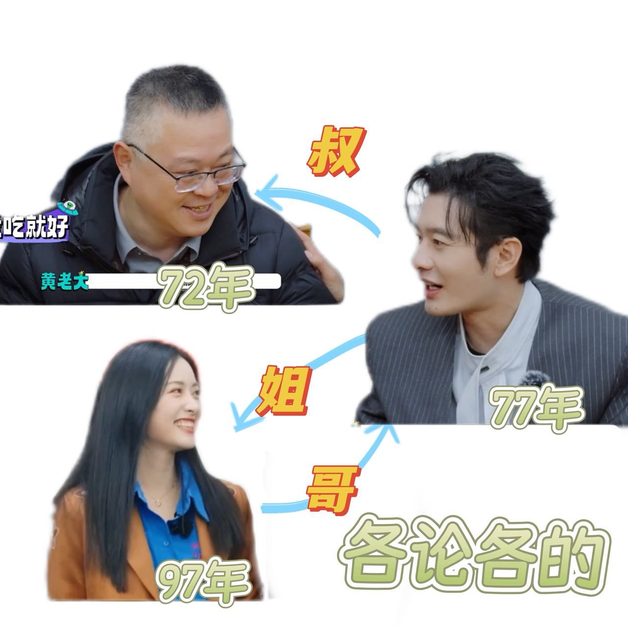 77年黄晓明叫97年沈月姐宇宙闪烁请注意 笑不活了!77年的黄晓明辈分换算绝了,叫棣爸哥又喊97年沈月姐,这张口就来的笑点,综艺感直接拉满!