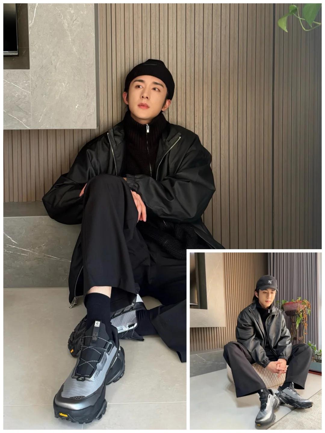 不愧是说自己喜欢捯饬的本哥,私服真的是又帅又时髦的 all black脚踩一双FUGA黑山,又潮又酷 换了一顶棒球帽,又少年感十足的 就是说,哥你真的不要太会