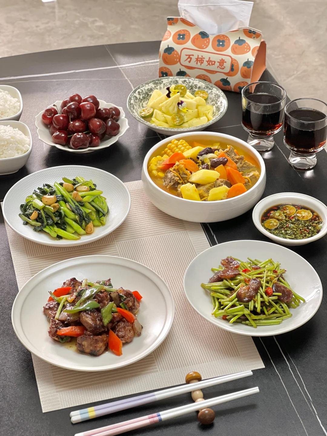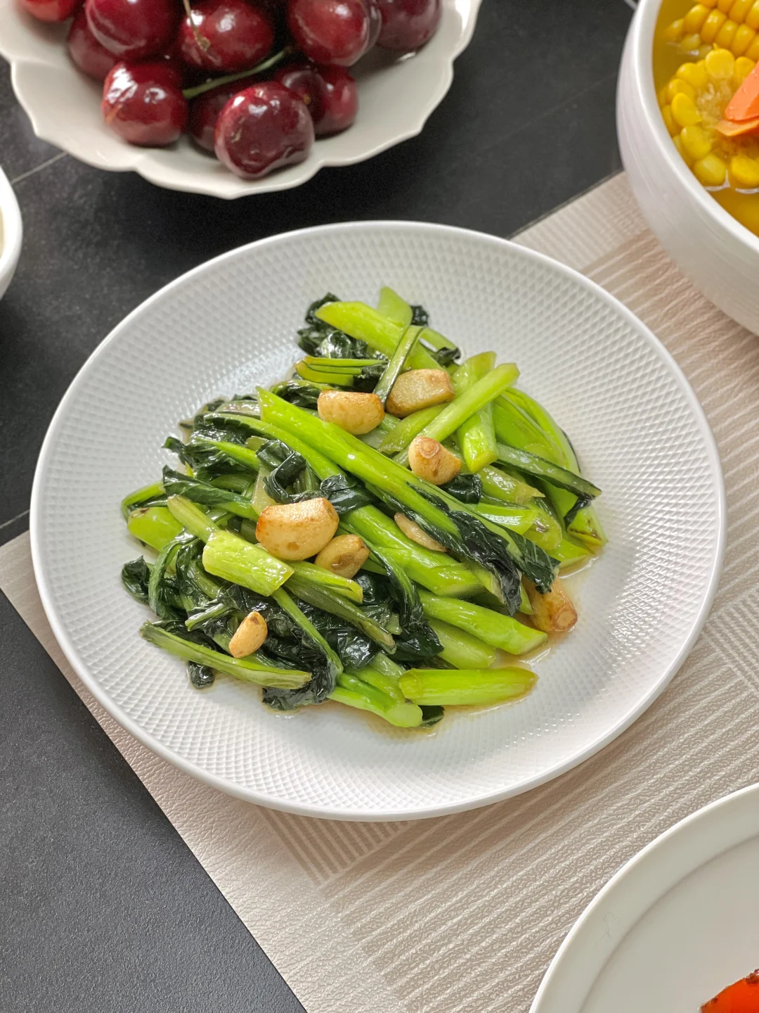 喜欢吃排骨的小伙伴可以试试这个风味独特的腐竹烧排骨,脊骨的部分正好拿来炖汤,排骨两吃,不浪费一点儿[偷笑R] 【腐乳煎排骨】 【生炒菜心】 【排骨玉米汤】 【芦蒿炒腊肠】
