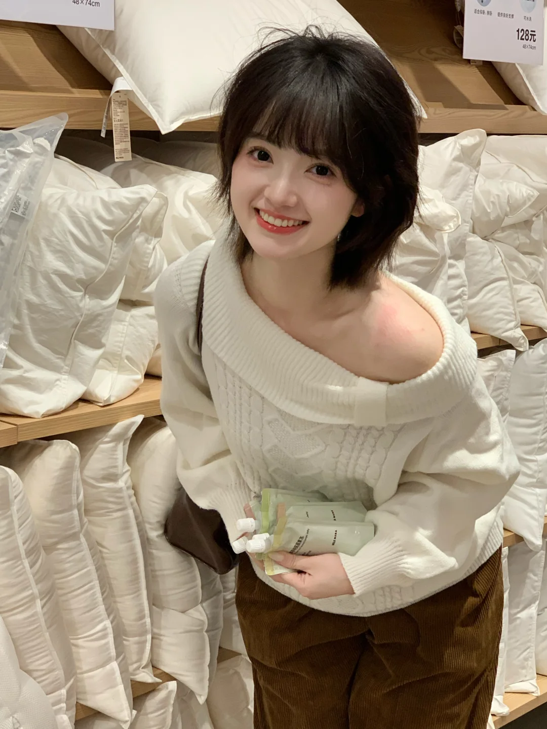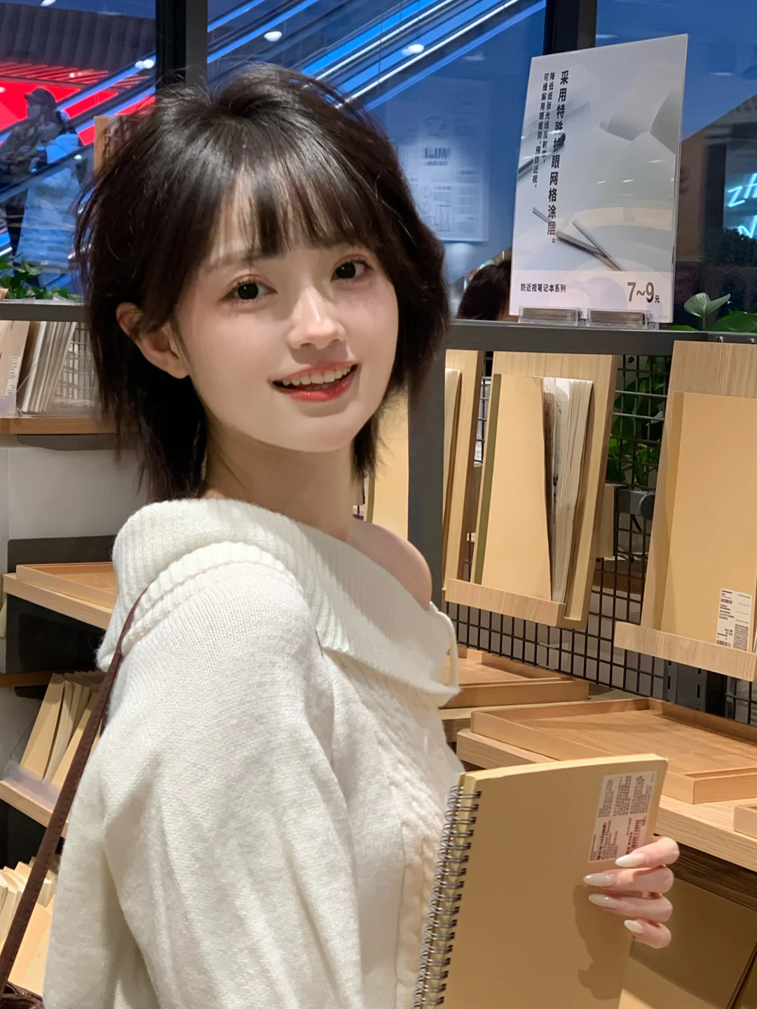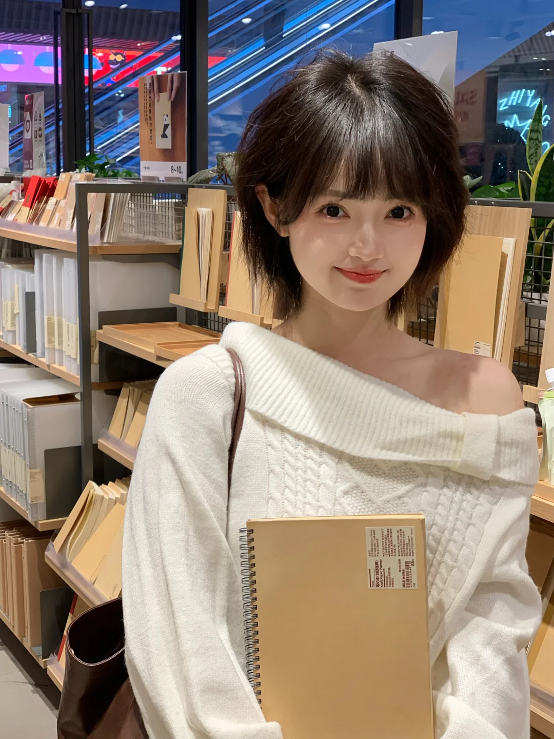 圆脸微胖的舒适区 是短发和斜肩毛衣🥛