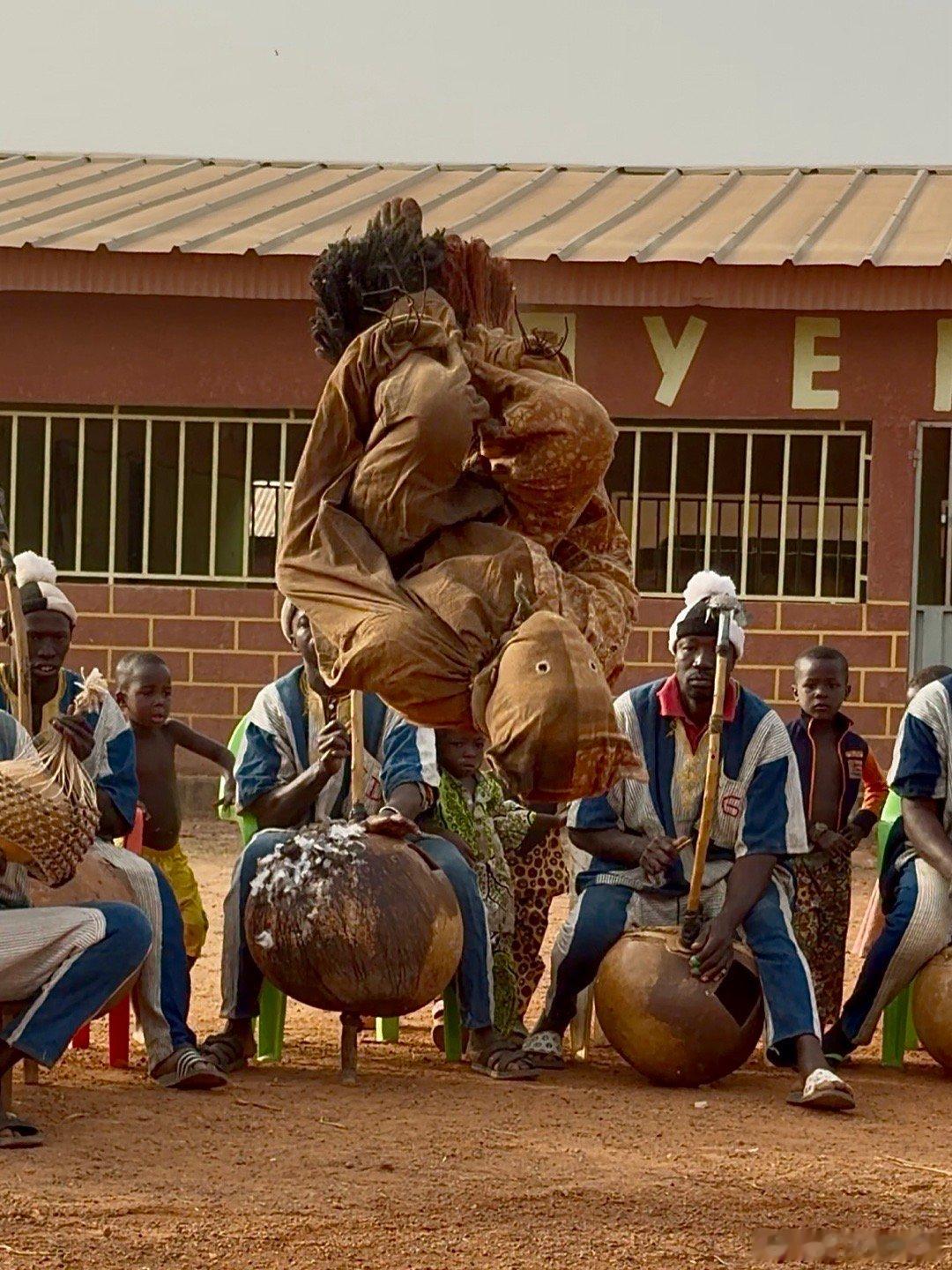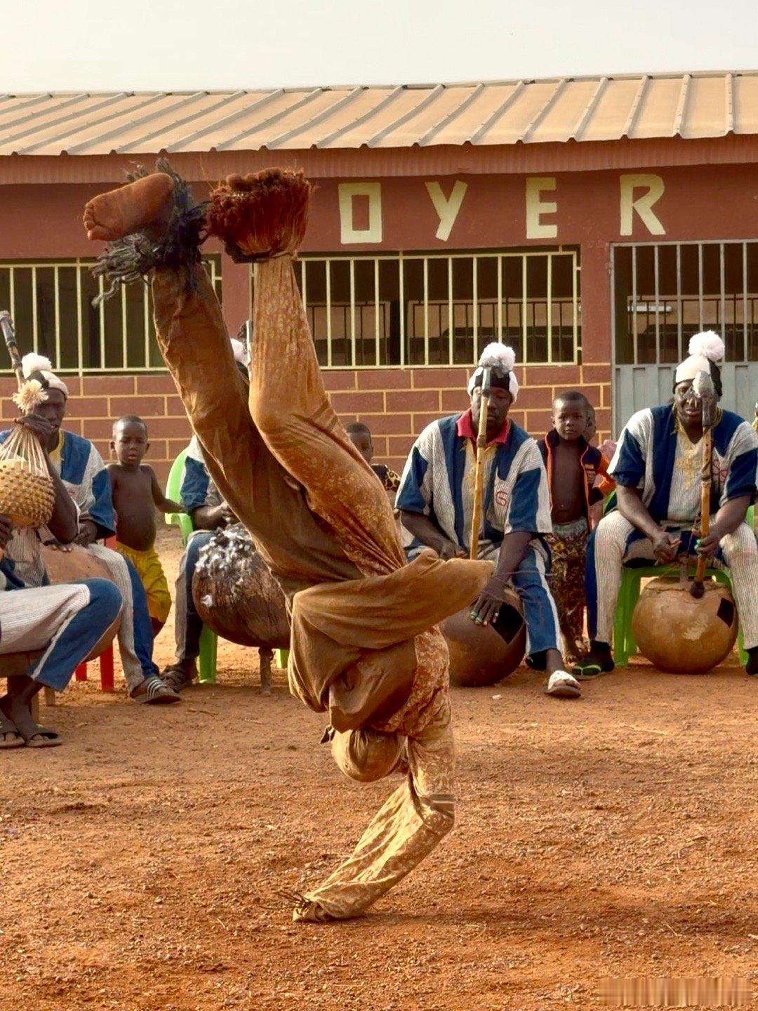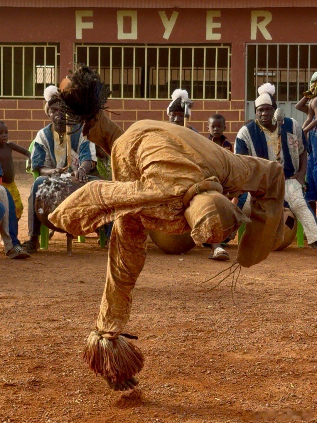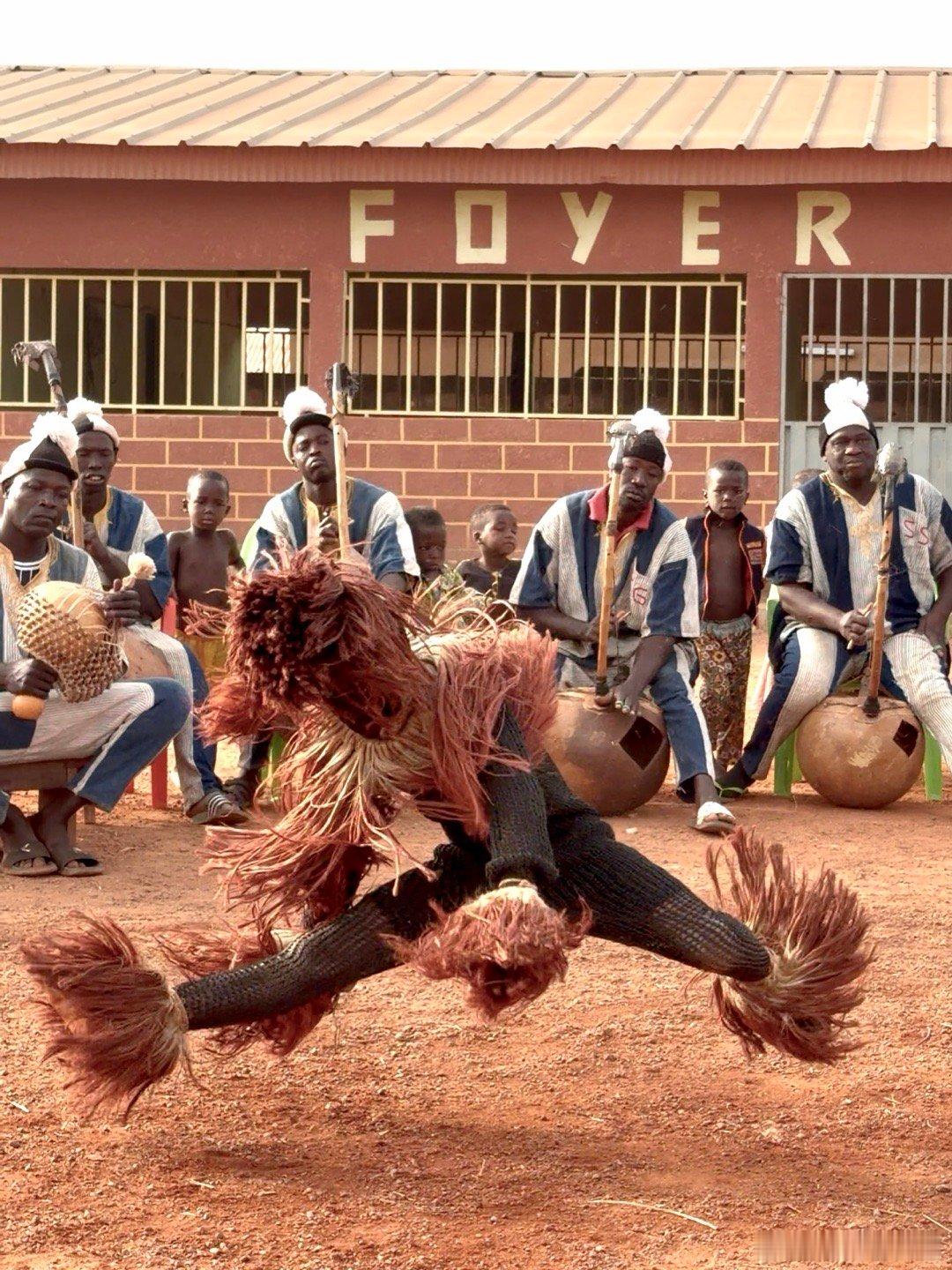西非科特迪瓦塞努福人(Senufo)黑豹舞。普若社团是塞努福社会中最具影响力的秘密团体,他们有一个针对年轻人复杂的、长达七年的入会仪式,被称为 “克洛贝勒”。整个仪式需要在森林中隐居长达 3 个月。克洛贝勒的一项工作是执行传统的面具仪式,整个仪式在当地被称为黑豹舞。黑豹在塞努福文化中代表力量、敏捷、勇气和神秘。舞者通过模仿黑豹的动作,象征普若社团的军事训练、纪律和战斗精神。豹也被视为保护者和战士的化身。舞者身穿模仿豹皮的服装,做出各种高难度挑战性动作,展示在森林中艰苦训练的成果。黑豹舞早在殖民时期之前就已存在,在19-20世纪初的民族志记载就有记录。传统黑豹舞最初用于葬礼仪式,后来扩展到其他庆典,现在常作为文化展示出现在旅游节日场合,但核心仍保留神圣性。配乐使用 calabash(葫芦鼓)、bolons(带绳的葫芦乐器)、鼓、笛子和歌唱,形成节奏强烈的伴奏。谢田的环球足迹