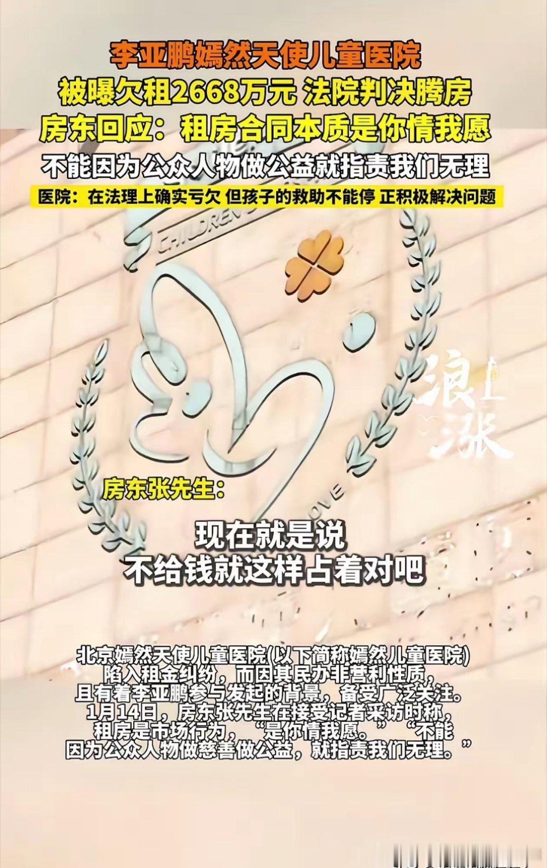 房东回应嫣然医院疫情续约租金翻倍从房东的回应来看,李亚鹏建嫣然医院的初心是真的,帮了上万唇腭裂孩子也是事实。而房东大爷前十年半价租给他,也够仗义了。房东没有错,我们不能要求人家无偿奉献,爱心是自愿的,绝对不能强求,更不能道德绑架。热点观点