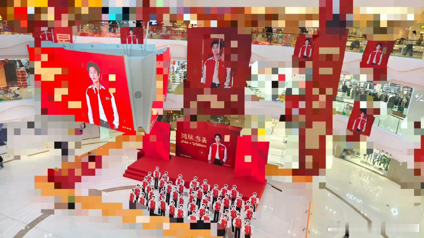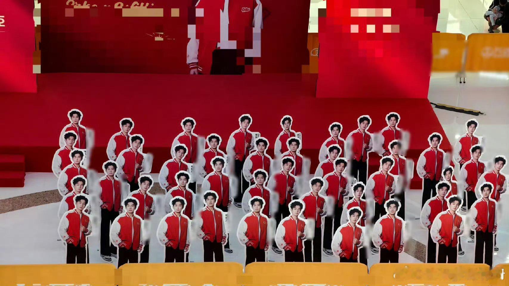 杨旭文一个人就是一个战队 內娱独一份的排面!杨旭文红白色棒球服人形立牌排成整齐方