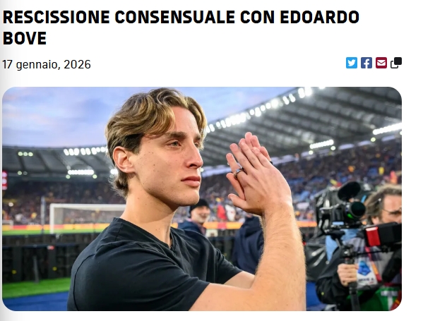 直播吧01月17日讯官方消息,罗马与23岁意大利中场博维提前解约。据此前报道,博维即将加盟英冠球队沃特福德。