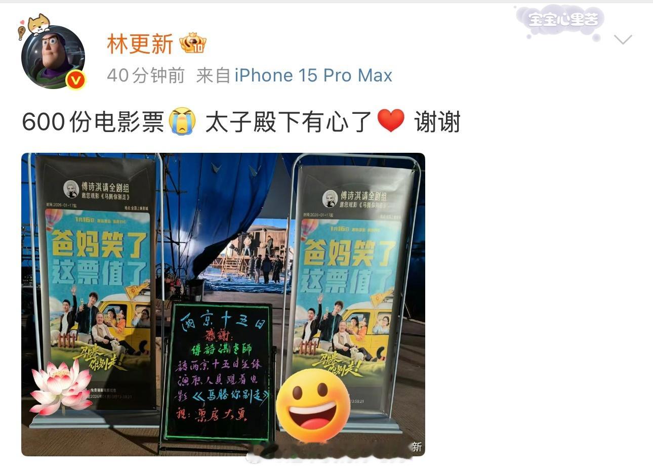 林更新发文感谢成毅包场电影 太大方了 林更新感谢成毅包场
