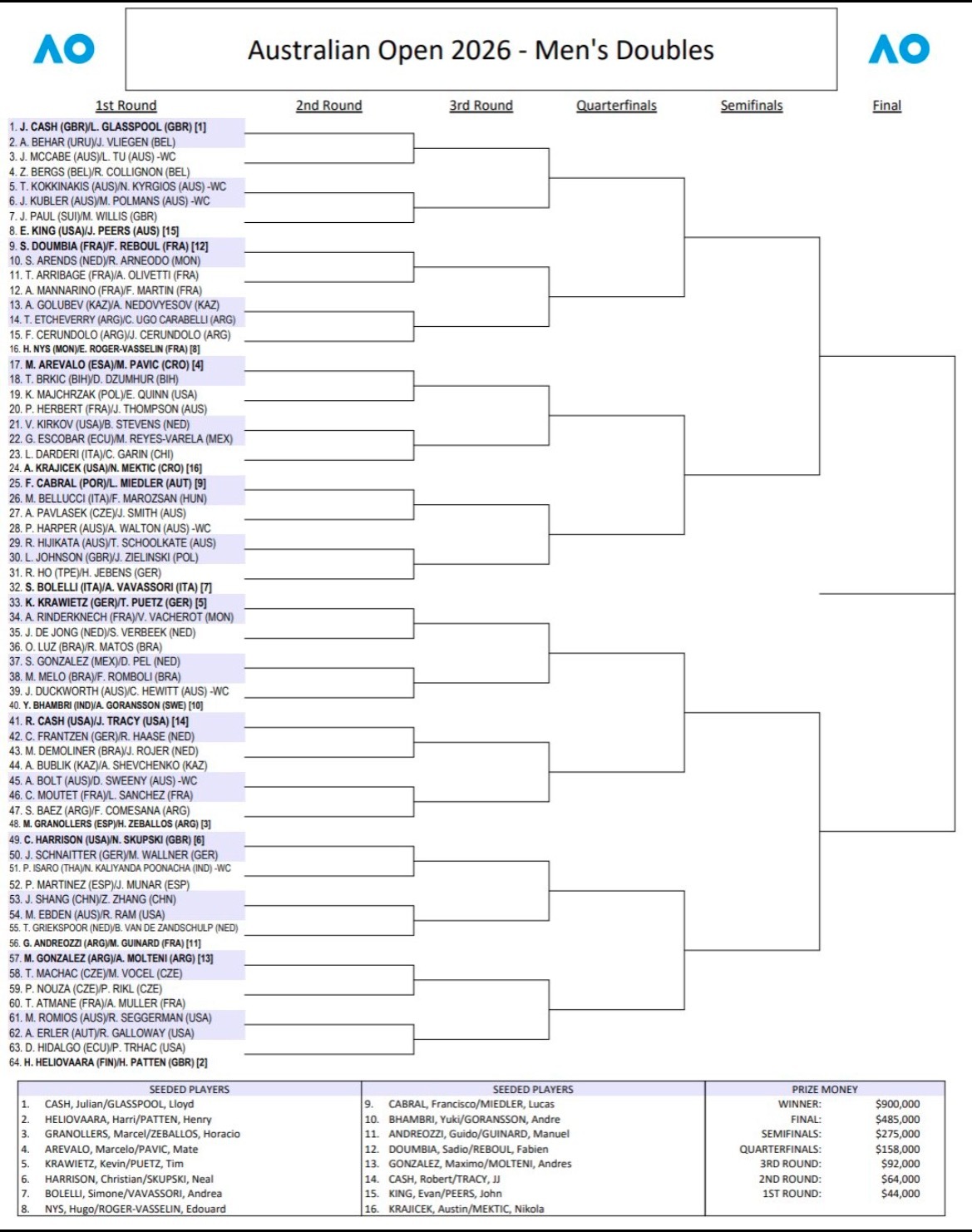 这很澳网网球talking大会澳网2026 双打签表出炉,亮点能发现吗?