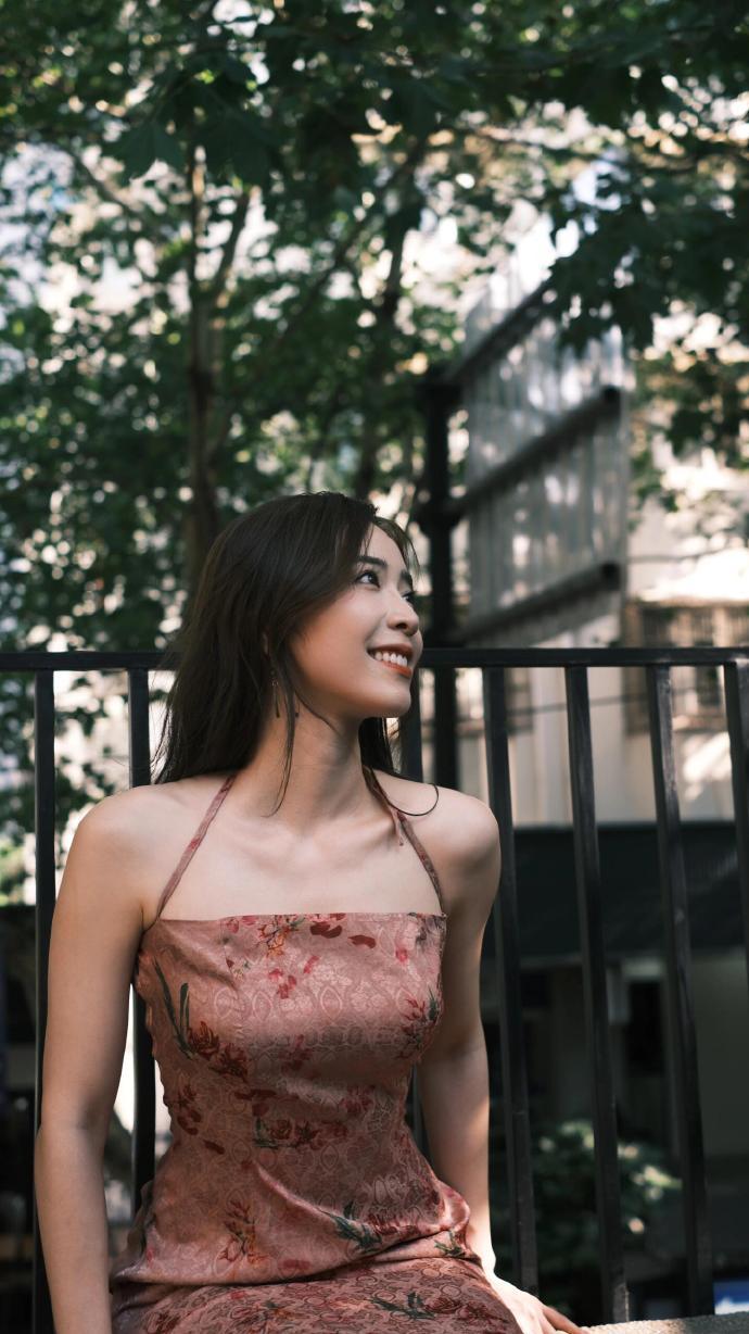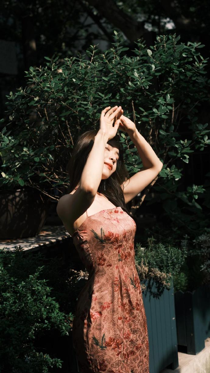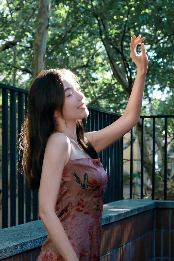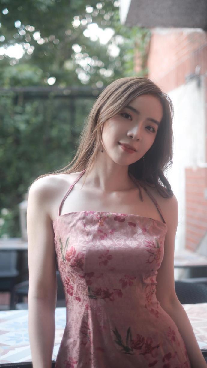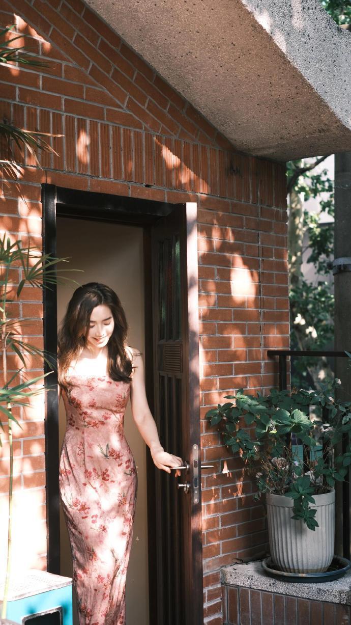 余霜穿搭精选:复古咖啡店写真,复古刺绣吊带长裙,文艺氛围感拉满。