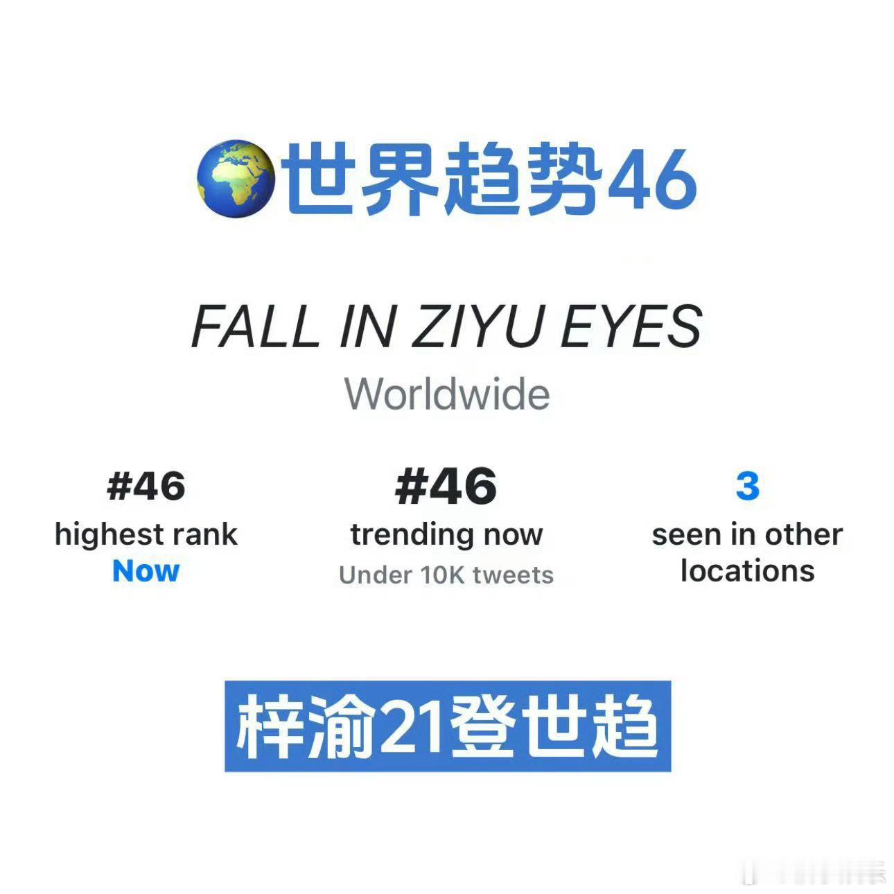 梓渝又上世趋了,世趋第46,已经第二十一次了,露面即出圈,上世趋如呼吸般容易,真的做到了全球独爆!