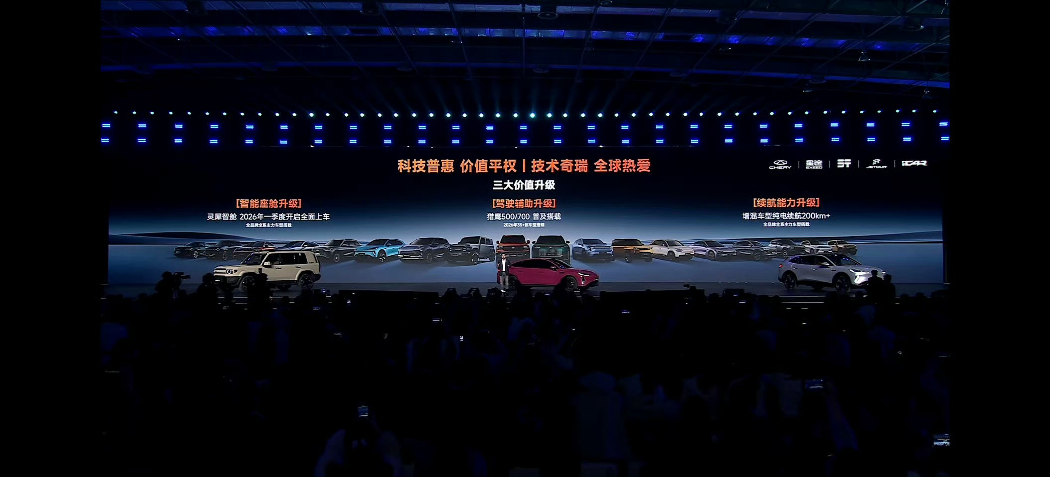 2026奇瑞汽车AI之夜 奇瑞这波新车合集看下来,感觉每款都挺懂普通人需求的,全系带AI配置不说,部分车型还开了盲订,有心动的可以留意下。我个人还挺喜欢全新QQ3的,别看是代步小车,CheryGPT加持后日常用着足够智能省心;风云T9L把东方美学和鲲鹏AI混动放一块儿,动力和省油兼顾得挺到位,家用挺合适。iCAR V27的猎鹰700智驾,跑复杂路况时应该能省不少心;纵横700的全地形能力,对爱越野的朋友很友好。风云A9的造型很耐看,AI调音功能能适配不同人的喜好,这点挺贴心的。这么多车型,你更看好哪一款?科技有AI