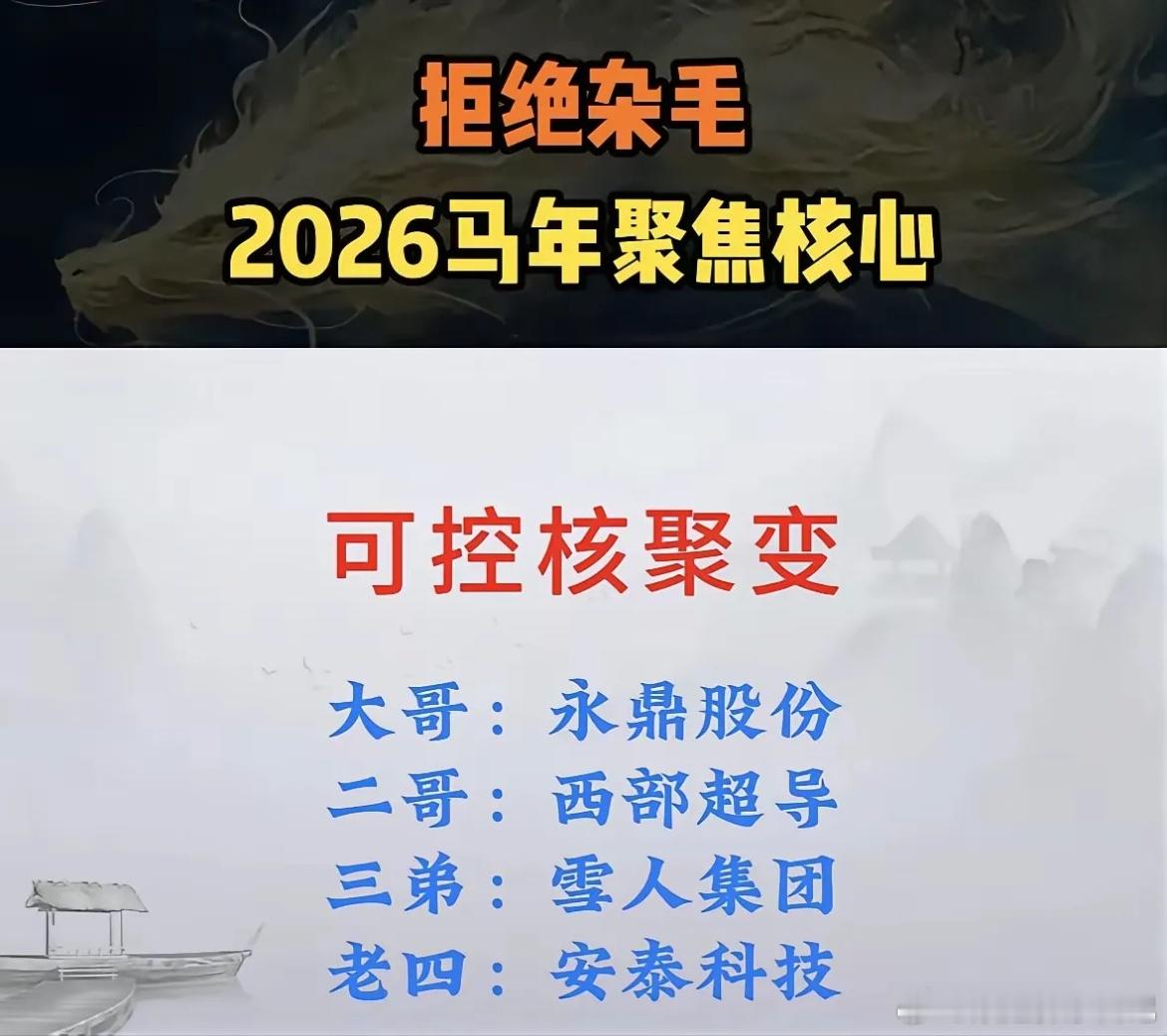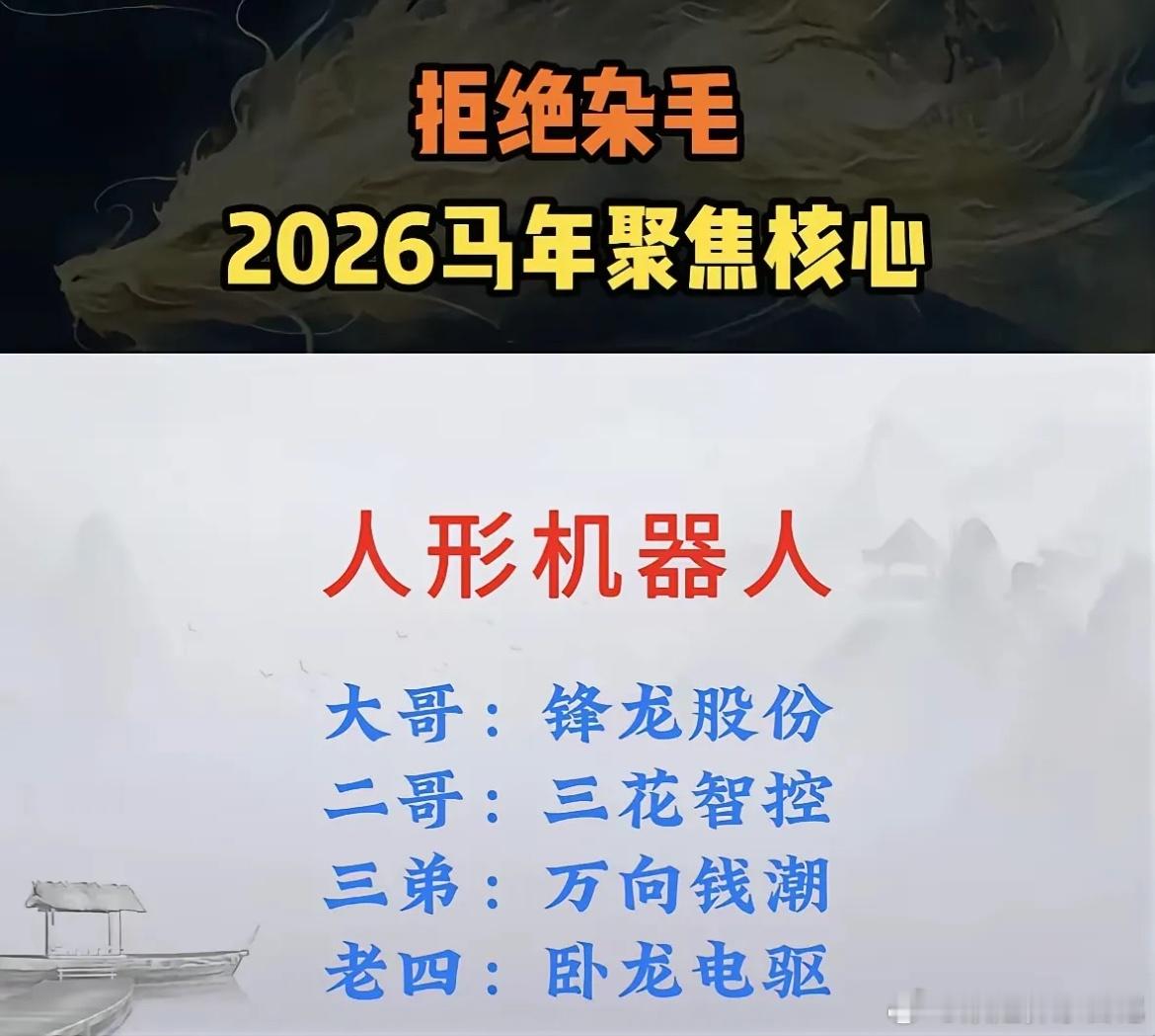 2026年聚焦核心板块短期过热调整,中长期仍然有预期。一、商业航天航天发展、金发科技、航天电子、雷科防务、中国卫星、中国卫通、北斗星通二、AI应用蓝色光标、利欧股份、值得买、引力传媒、线上线下、昆仑万维三、人形机器人锋龙股份、三花智控、卧龙电驱、金发科技、万向钱潮、中大力德、汇川技术四、可控核聚变永鼎股份、西部超导、中国核建、雪人集团、安泰科技、沃尔核材、融发核电、王子新材五、脑机接口创新医疗、岩山科技、三博脑科、南京熊猫、塞力医疗、爱朋医疗、道氏技术、国际医学六、存储芯片兆易创新、江波龙、明德利、香农芯创、立昂微、圣晖集成、三孚股份、佰维存储、通富微电