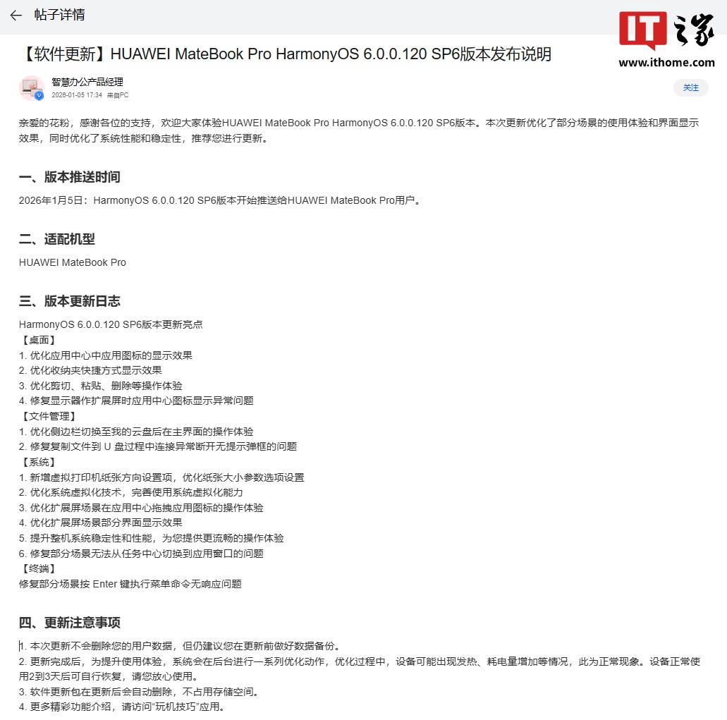 IT之家查询获悉,目前HarmonyOS6.0.0.130版本尚未开启推送,花粉俱乐部显示,最新版本为6.0.0.120,更新亮点如下: