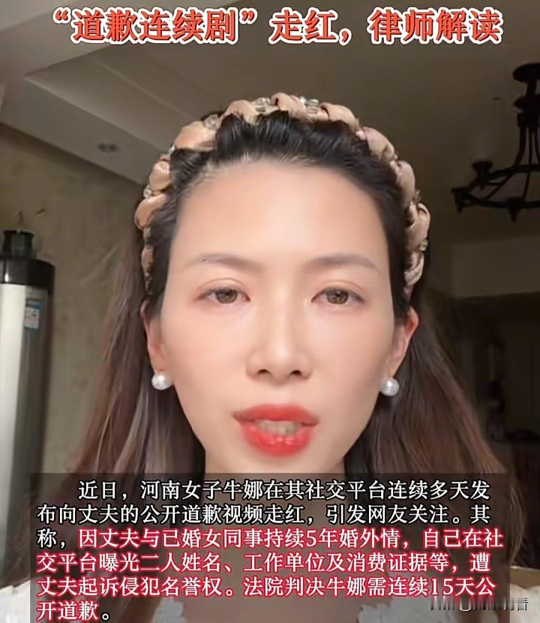 🔥年度最爽“道歉”!河南女子连续15天反讽式曝光,渣男被扒得底朝天! 我觉得这剧情比电视剧还魔幻!河南牛娜的“道歉连续剧”直接炸穿全网,单条视频70万+点赞,网友看完直呼“太解气”又“太敢了”😱 📝事件始末: 丈夫和已婚女同事搞了5年婚外情!牛娜气不过,在社交平台曝光了两人姓名、工作单位和消费证据,结果被丈夫起诉侵犯名誉权,法院判她连续15天公开道歉… 但她的操作绝了!每天按时发“道歉视频”,标题写着“我认错,服从判决”,内容却疯狂输出: ✅ 晒丈夫给第三者买奢侈品的消费记录(包包、首饰清单一目了然) ✅ 附法院判决书+此前侵权内容截图 ✅ 反讽丈夫“贴心满足职工物质与生理需求”“你们才是真爱” ✅ 指名道姓提丈夫单位、出轨细节,把“道歉”变成公开处刑! 截至1月16日,第一条视频播放破百万,15天道歉视频全勤更新,涉事丈夫和单位至今没敢回应… ⚖️律师划重点: 律师直言这操作踩法律红线了!就算丈夫出轨有错,也不能额外披露私密信息、用贬损性语言攻击,可能构成新的名誉权、隐私权侵害,搞不好要二次担责⚠️ 💥网友吵翻了: “支持!渣男就该被曝光,这道歉太解气了” “道德上共情,但法律是底线,不能用侵权对抗侵权” “重点是丈夫是国有单位党员干部吧?出轨是不是该查纪律问题?” 一边是婚姻背叛的委屈,一边是法律规定的边界,这场“道歉闹剧”到底是维权还是越界?你站牛娜吗?评论区聊聊!
