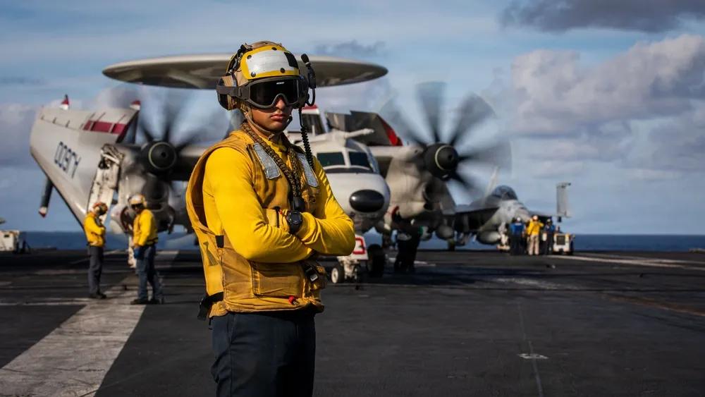 2026年1月5日,隶属于美军第87攻击战斗机中队的舰载机,在加勒比海航行时,滑行在福特级航空母舰杰拉尔德·R·福特号(CVN 78)的进行飞行训练。美军部署到加勒比地区,支持美国南方司令部的任务、战争部指挥的行动,保护国土的优先事项。