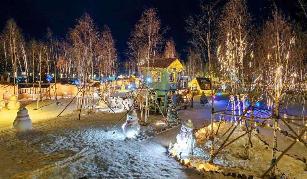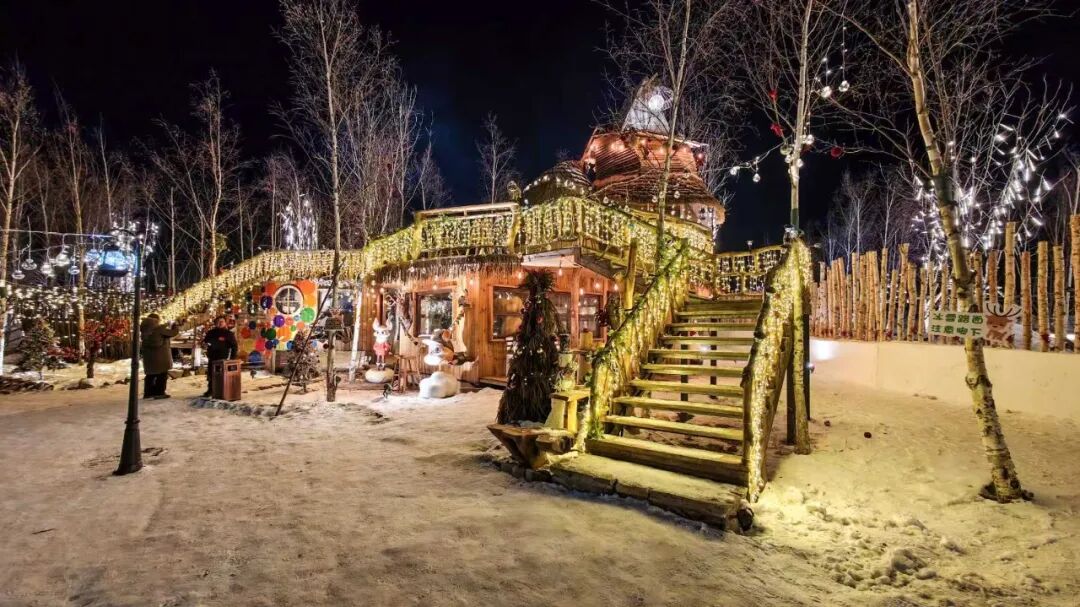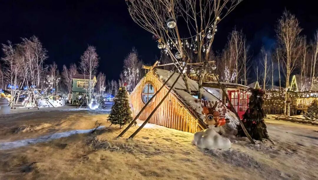 长白山麓的角村,雪覆茅檐,一片素白,正被夜色点亮,繁星与暖灯交映,勾勒出林海雪原的温柔轮廓,窗前的暖光让冬夜有了温暖的感觉。