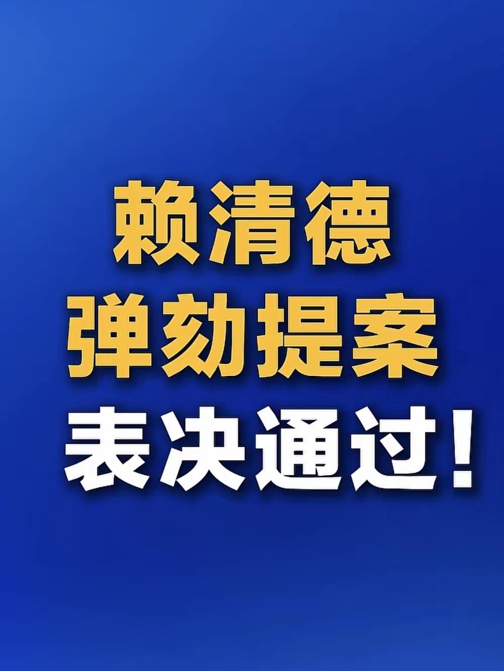 800万人联署逼宫!赖清德弹劾案推进,“台独”好日子要到头? 台湾省这波操作太解气了!2025年12月26日,蓝白两党联手提交的赖清德弹劾案,以60票赞成、51票反对在台民意机构高票通过,如今1月14日起已进入公听会环节,5月19日将迎来最终投票,“台独”头目要栽了? 这可不是政治闹剧,而是民心所向!短短几天,超817万台湾民众联署弹劾,连网络调查都有95%的人支持优先弹劾,反观“台独”支持率暴跌7.5%,赖清德算是彻底成了“过街老鼠”。他执政后净干糊涂事:一边搞“流刺网”式管控阻碍两岸交流,一边卖台求荣推动台积电外移,还想把5%GDP砸去买军火,简直是拿台湾民众的生计当赌注。 更有意思的是美国的“双面戏”,嘴上说台湾问题是中国内政,转头就砸121亿美元对台军售,无非是想先解决其他麻烦再回头搅局。但现在岛内民意觉醒,大陆惠台政策持续发力,福建融合示范区越建越好,统一的底气越来越足。 "台独”就像秋后的蚂蚱,蹦跶不了几天了。这场弹劾案不仅是岛内政治的分水岭,更是统一进程的加速器,看来两岸团圆的日子真的越来越近了!