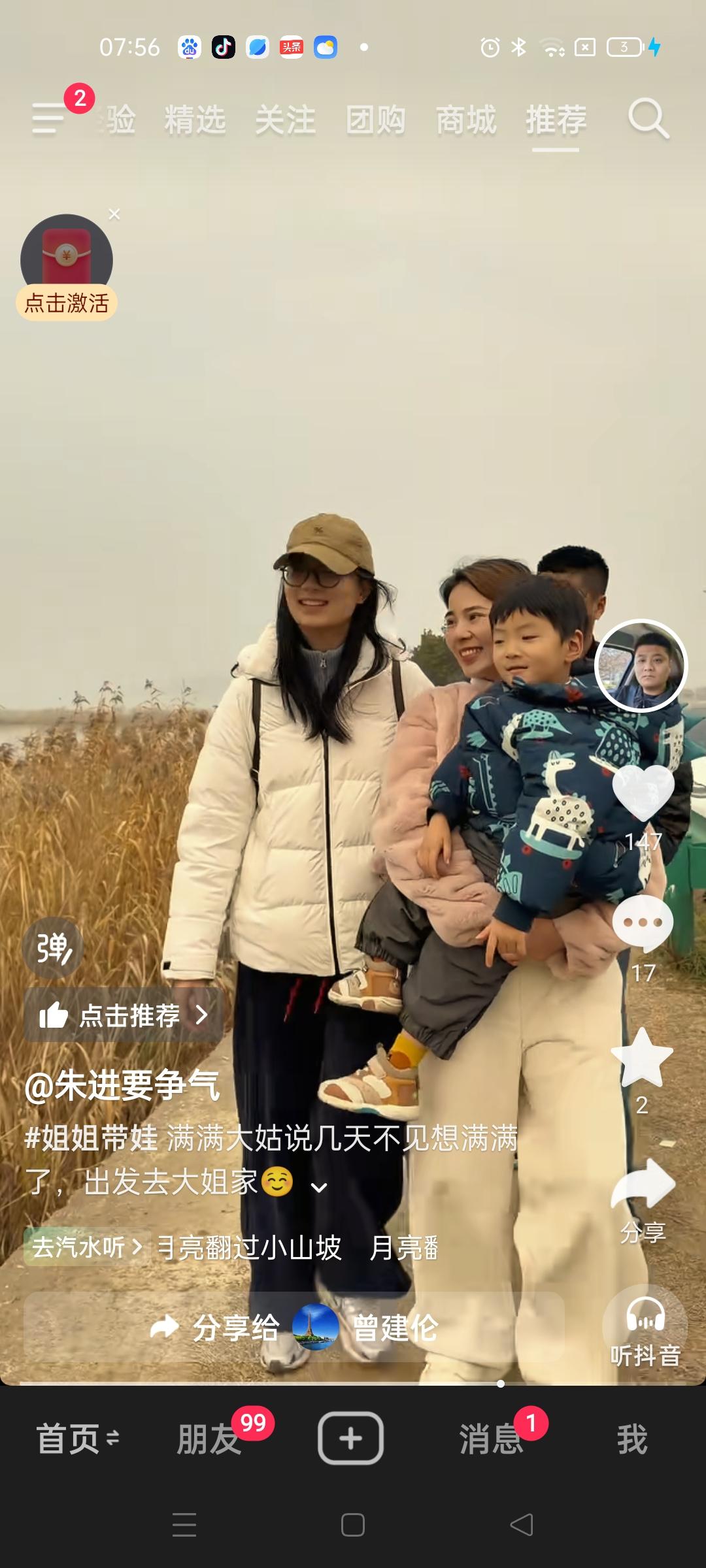 朱进带着老婆孩子从宁波出发濮阳苏州大姐家,说是大姐想他们的儿子了,到达苏州后,一家人一起驱车去往生态旅游景区喂海鸥,看起来大姐对这家人的爱是发自内心的,并没有因为没有血缘关系就排外,这也让朱进一家有了支持的力量,朱进有两个姐姐太幸福了。 只是朱进的段子需要有创新了,不能单纯的停留在今天去这家明天去那家了,这样下来,不用拍段子,大家都能猜到下一个段子该去谁家了。 希望朱进能给大家带来更优质的视频内容。