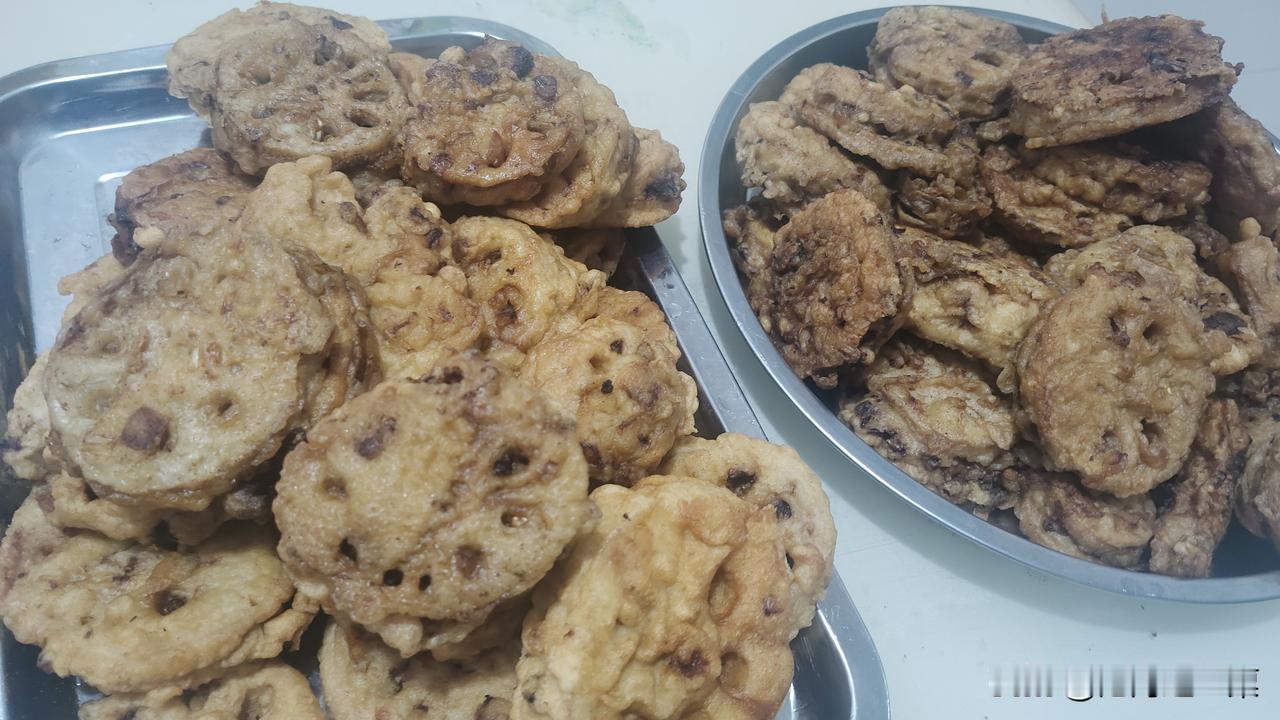 炸了一晚上,够孩子吃一星期的,藕盒好吃,就是太麻烦。