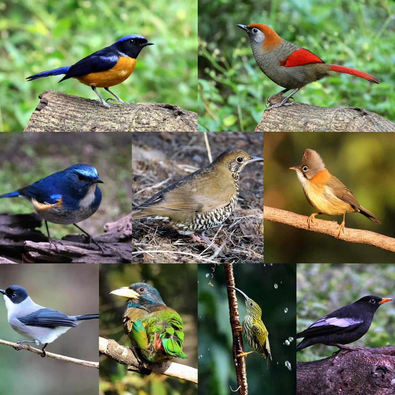 一天半我在百花岭拍到了46种鸟! 正好在今冬寒冷的三九时节,我第6次来到了地处滇西北高黎贡山的观鸟胜地____百花岭。 与前几次不同的是,这次我的主要目标鸟是国家一级保护动物黑颈长尾雉。从8号早上到9号中午,在一天半时间内,我总共拍到了46种鸟,除41种是以前拍过的,其中加新了5种。时间短,效率高。 它们分别是黑颈长尾雉、斑尾鹃鸠、喜山淡背地鸫、白腹幽鹛、黄腹啄花鸟、乌灰鸫、灰树鹊、长尾奇鹛、丽色奇鹛、红头穗鹛、锈额斑翅鹛、赤尾噪鹛、云南雀鹛、金翅噪鹛、蓝翅噪鹛、黄颈凤鹛、黑头奇鹛、蓝翅希鹛、火尾希鹛、紫啸鸫、长尾地鸫、大仙鹟、棕腹仙鹟、橙胸姬鹟、白喉扇尾鹟、栗腹矶鸫、黑胸太阳鸟、绿喉太阳鸟、星头啄木鸟、大拟啄木鸟、蓝喉拟木鸟、金喉拟啄木鸟、纹背捕蛛鸟、蓝眉林鸲、蓝额红尾鸲、凤头雀嘴鹎、橙腹叶鹎、黑短脚鹎、黄绿鹎、绿翅短脚鹎、灰卷尾、栗臀䴓、橙斑翅柳莺、黄颊山雀、银耳相思鸟、灰林䳭。 现在是去百花岭观鸟的最佳时节,众鸟云集,不少鸟友都是数度去了。您准备出发了吗? 挑了我这次在百花岭拍的部分鸟,拼图附后。看看您是否都认识,是否有没拍过的。