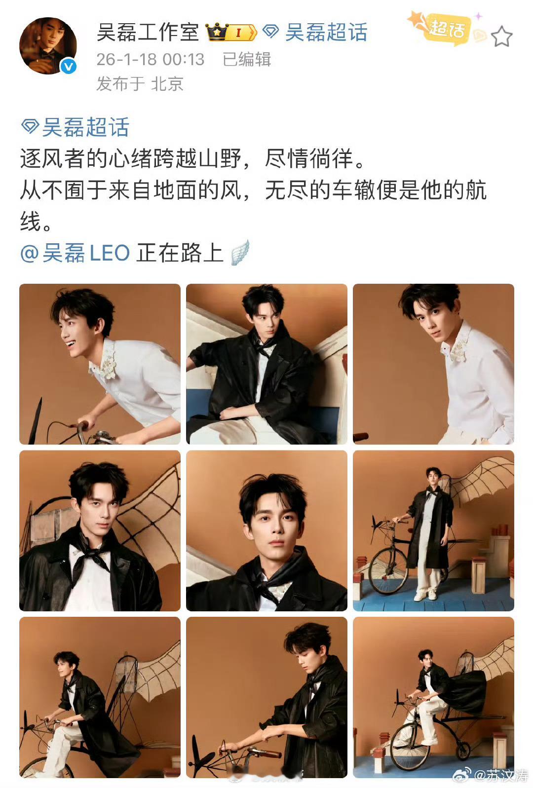 吴磊自行车骑上天 这何止是骑车,这是驾驶着梦想起飞!吴磊用这组创意大片告诉我们:只要敢想,就能抵达任何地方。帅气又充满深意。