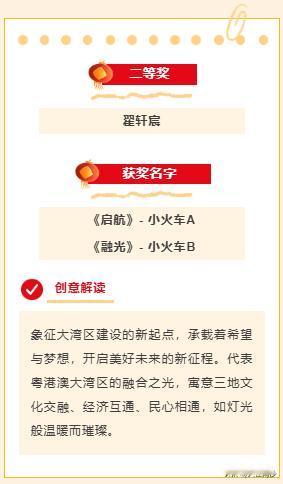 【南沙灯会小火车名叫珠水灯影和岭南流光】早前对外征集的南沙灯会小火车征名活动获奖名单正式公布!其中珠水灯影和岭南流光获得一等奖。二等奖是启航和融光,三等奖是花火和月光。 个人觉得这名字真的有点。。。好吧,不吐槽了,大家习惯就好。 根据介绍,本次两个小火车将在滨海公园部分穿梭,路线约1.15公里。可以看到小火车并不是全程穿梭,而仅仅是穿越两个主要灯区。目前官方并未公布小火车是免费还是收费的,不过个人猜测大概率应该是收费的,价格未明。