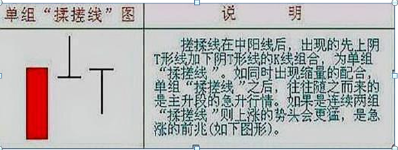 搓揉线在中阳线后,出现的先上T形线加下T形线,为单组"揉搓线"。如同时出现缩量的配合,单组"揉搓线"之后,往往随之而来的是主升段,如果是连续两组"揉搓线"则势头会更猛,是急涨的前兆