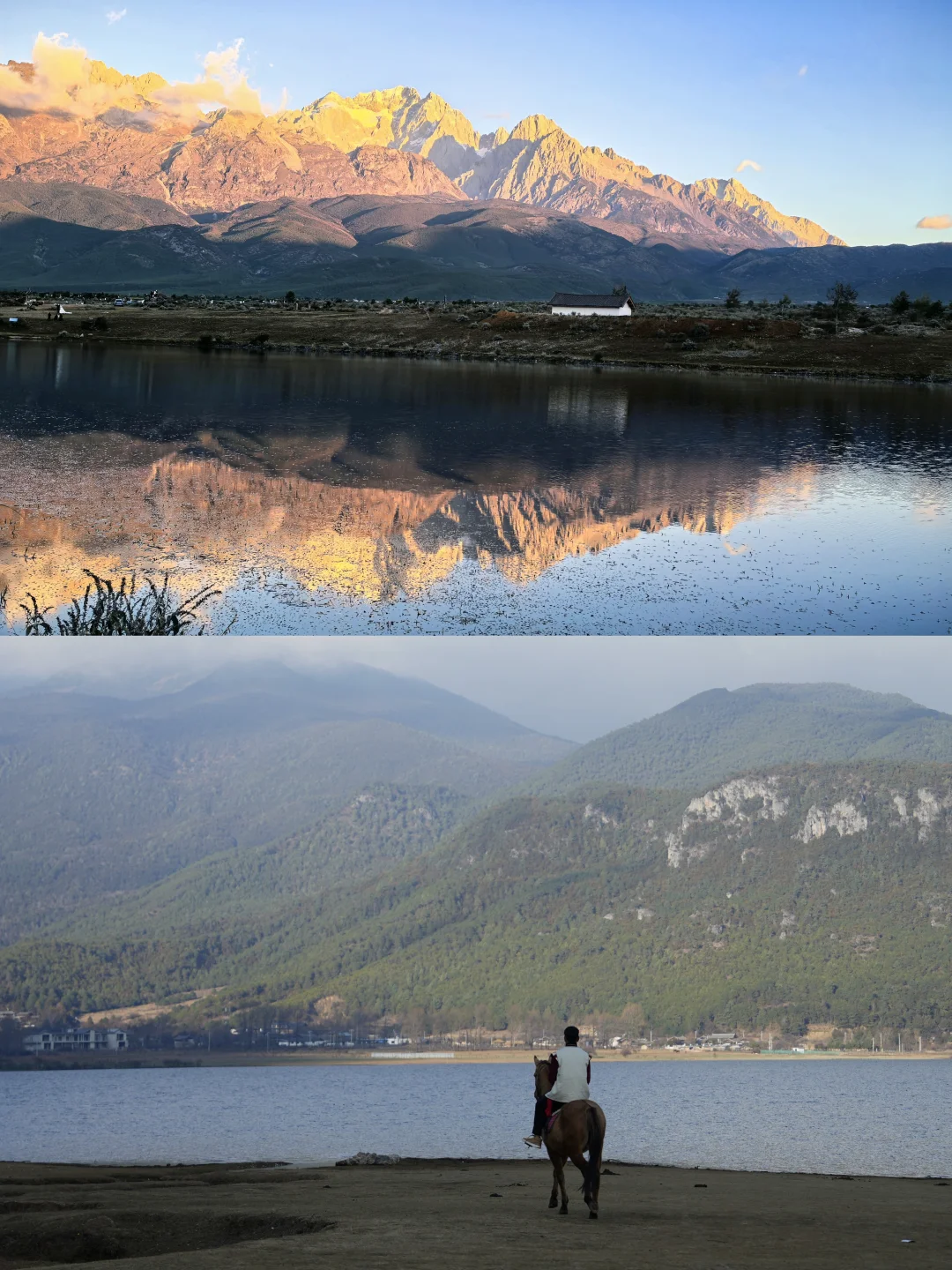 在丽江,若你厌了古城的人声鼎沸,不妨奔赴文海之畔的隐世隅落,看候鸟划破湖面的静谧,等落日🌄吻遍雪山的肩头。