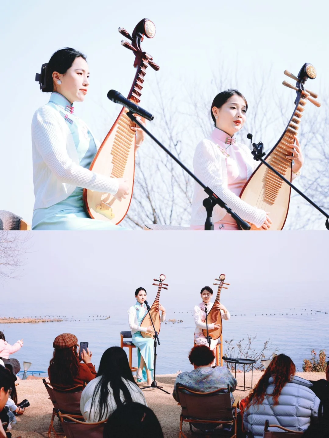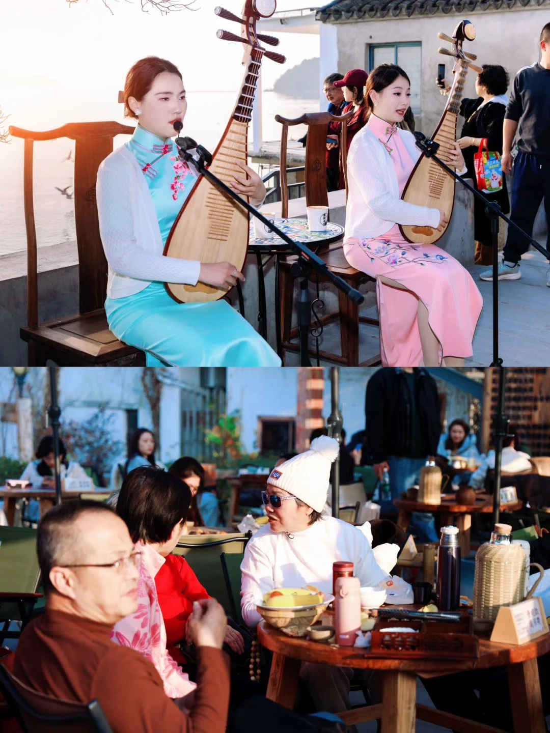 吴中区评弹团老师一开嗓《秋思》,喧闹瞬间安静,软糯唱腔飘在湖面上