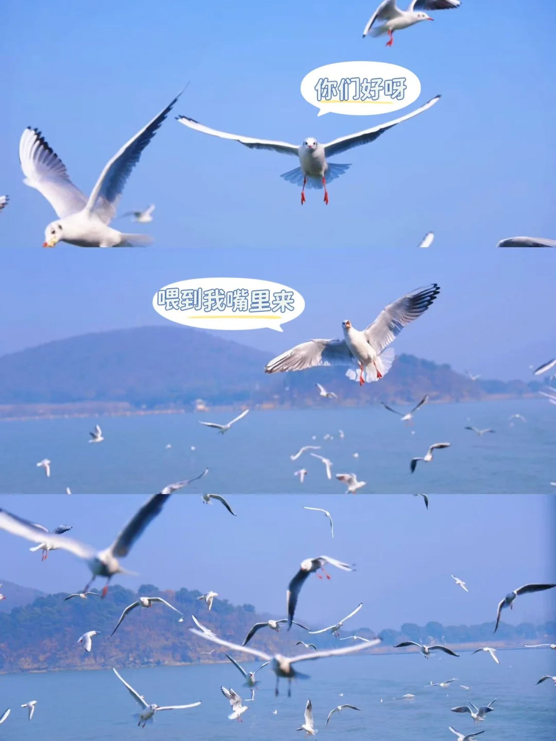 可以带面包投喂,看鸥群在空中划出漂亮弧线