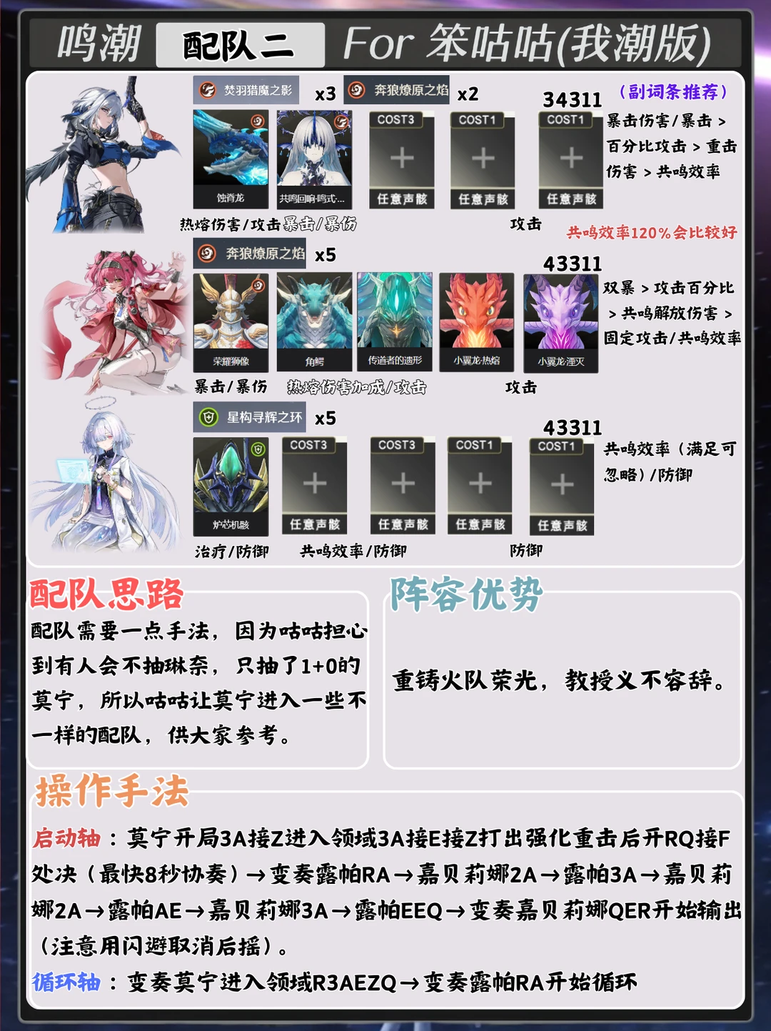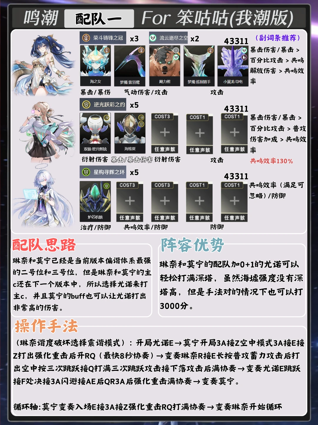 本期内容带来的是3.0版本“莫宁”的配队攻略~ 内含声骸/配队等内容~