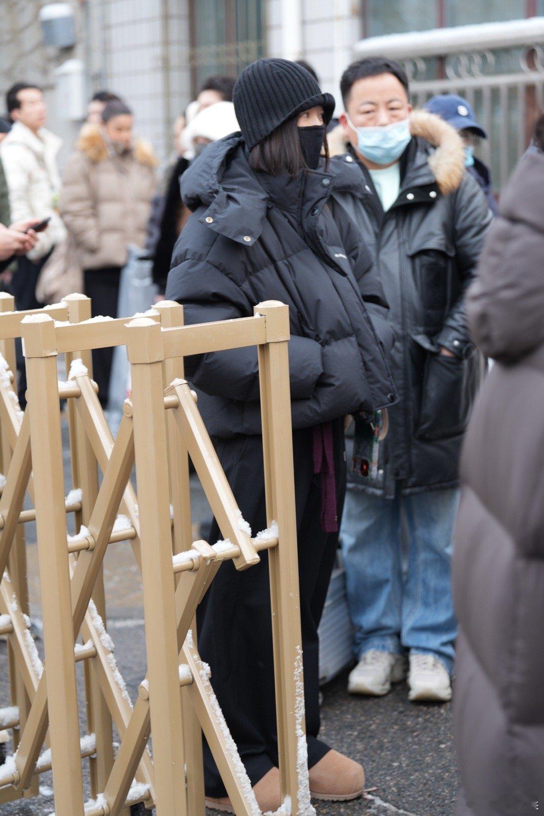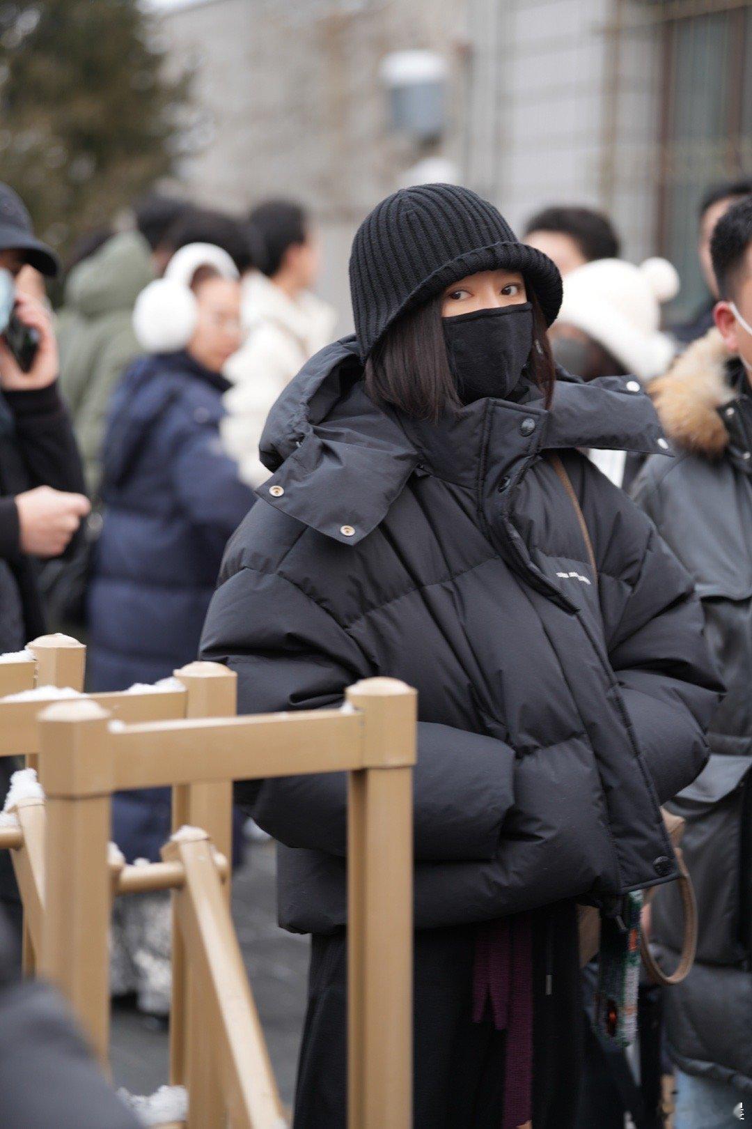 秦岚现身马年春晚彩排 寒雪天里的一抹亮眼,秦岚身着黑羽绒现身春晚首排,裹成粽子仍