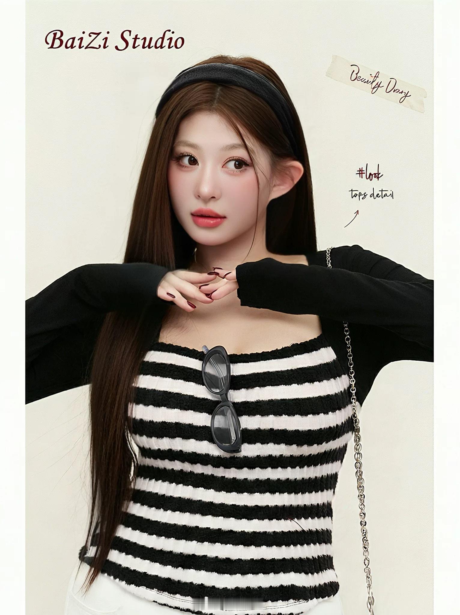 “紫薯TEE”双色条纹织法太会了🍠面料摸起来像婴儿肌肤一样软糯亲肤🌬️方领假两件设计把肩颈线条衬得超好看〰️〰️葡萄紫显白又温柔💜经典黑白百搭又带点小酷🖤🤍单穿内搭都超绝✨✨✨