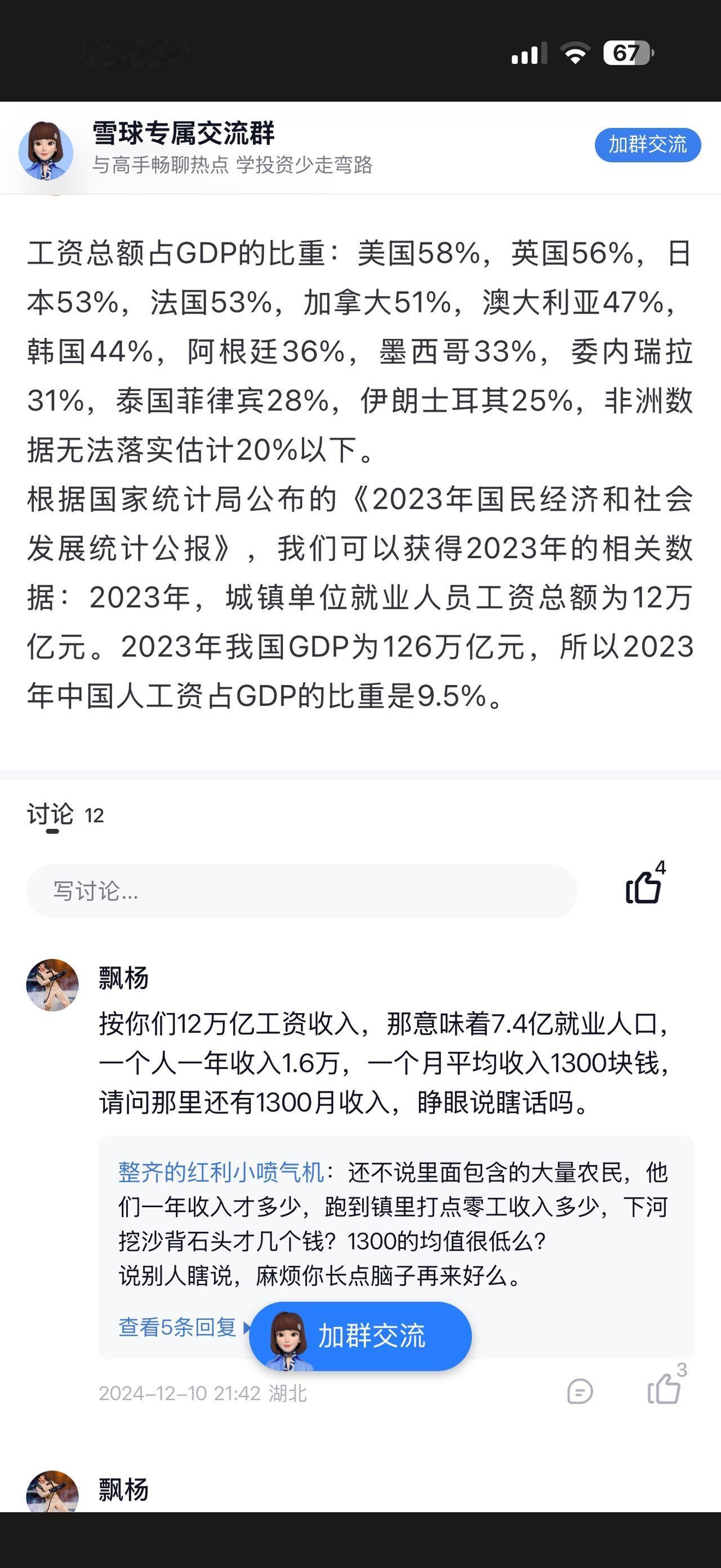 如果我国的劳动者薪酬占GDP比例,能够达到25%,那么内需不用拉动就会起来! 2026-1-12环球时报报道:美国2025年劳动者薪酬占GDP比例降至53.8%,创新低! 根据查到的数据2024年全球部分国家的相关数据如下: 北欧国家最高,在60%以上;美国58%,英国56%,日本53%,法国53%,加拿大51%,澳大利亚47%,韩国44%,阿根廷36%,墨西哥33%,委内瑞拉31%,泰国菲律宾28%,伊朗士耳其25% 根据国家统计局2025-1-17数据,我国在9.5%左右。(有兴趣的网友可以查询后计算) 如果,我国能够达到25%左右,也就是在现在人均收入的基础上提高1.5倍。那么内需自然而然就起来了,无需拉动。